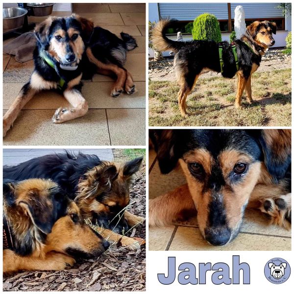 Da Jarah sich (bislang) anfänglich von Fremden nicht anfassen lässt und diese verbellt, und sie sich auch beim spazieren gehen noch sehr unsicher zeigt, sollten mehrere Kennlernbesuche eingeplant werden um Vertrauen zu dieser wunderschönen Hündin aufbauen zu können. Wer sich vor dieser Aufgabe nicht scheut und bereit ist Zeit in Vertrauensarbeit zu leisten wird eine ganz tolle Hündin bekommen!