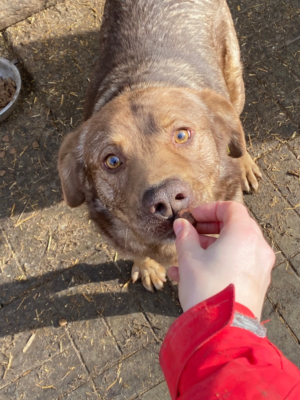 Unser süßer hofft seit bereits 3,5 unvorstellbar langen Jahren im Shelter auf seine Chance. Auch bei diesem Besuch begrüßte er uns direkt ganz freudig und konnte sein Glück über die seltene Aufmerksamkeit kaum fassen. Aufgeregt lief er von einer Person zur Nächsten, um sich seine heißgeliebten Streicheleinheiten abzubolen. JARED ist aktuell leider deutlich zu dick und wir sorgen uns um seine Gelenke. Wir wünschen dem lieben Kerl, dass er nach all der verlorenen Zeit endlich gesehen wird und auf der Sonnenseite ankommen darf. Mit seinen Artgenossen zeigt er sich verträglich.