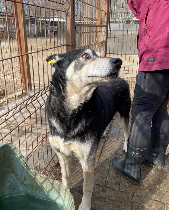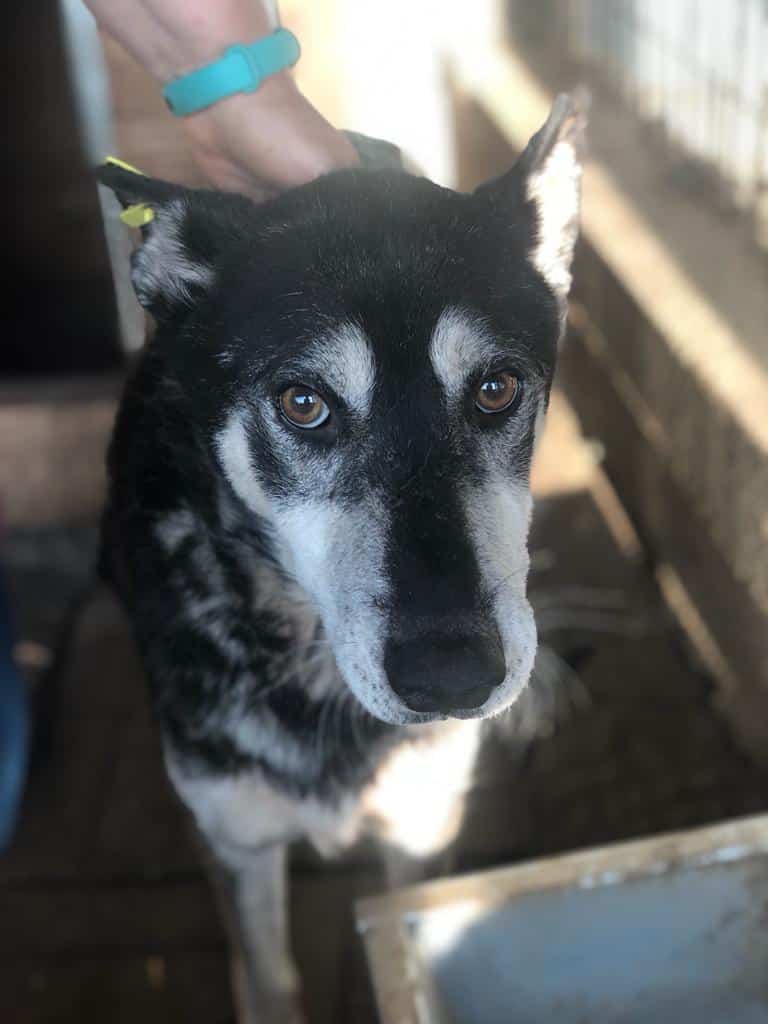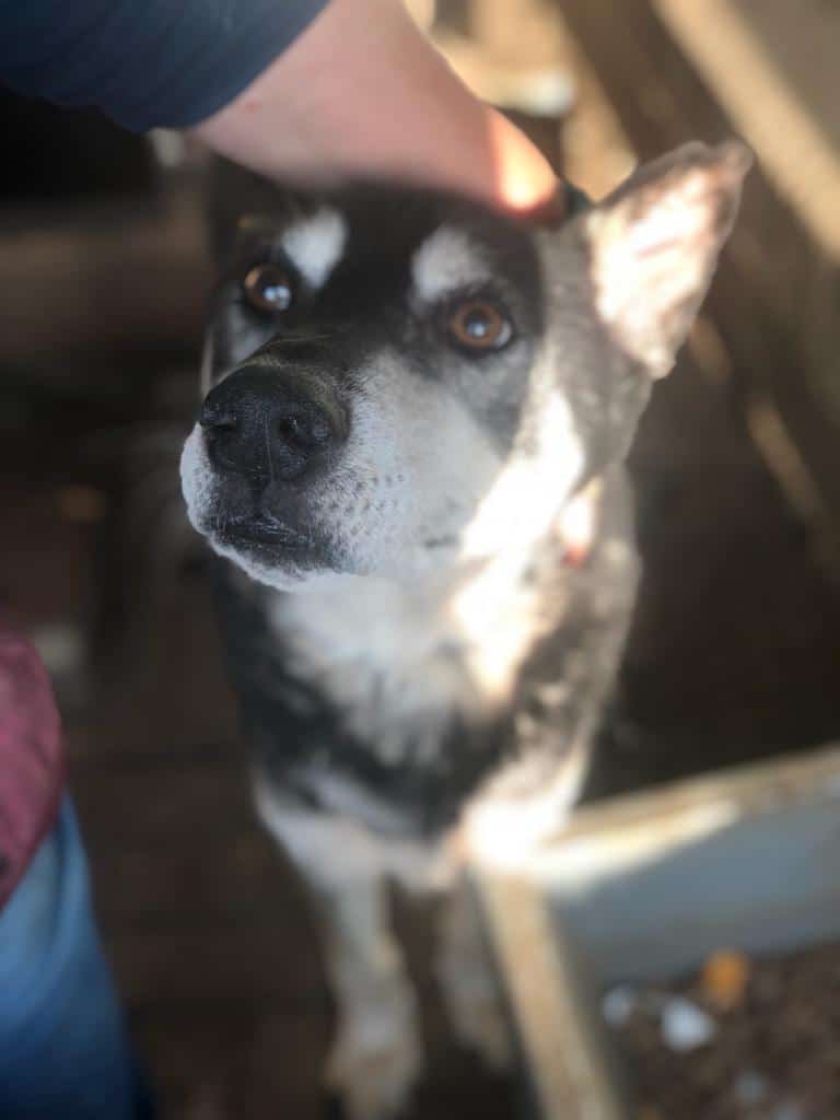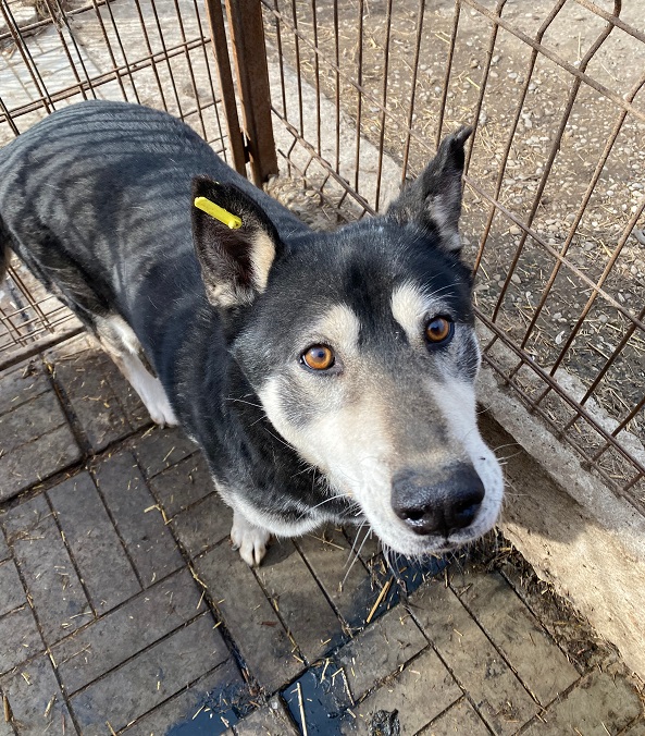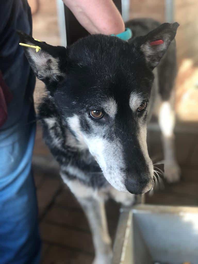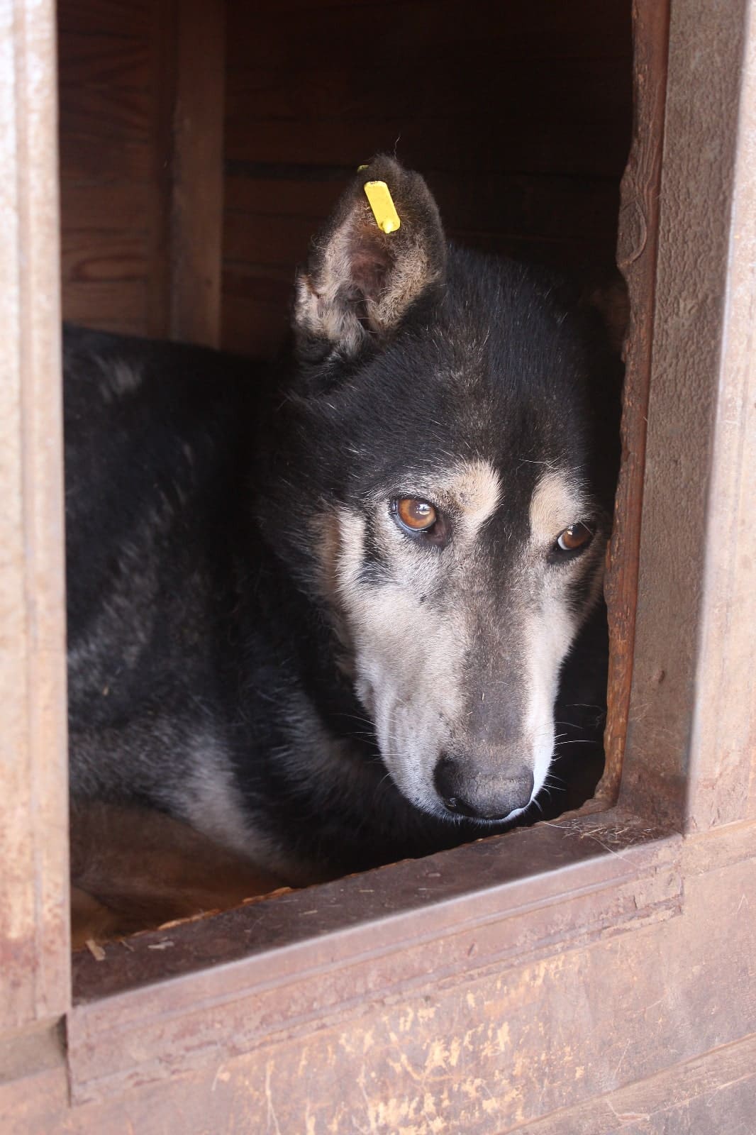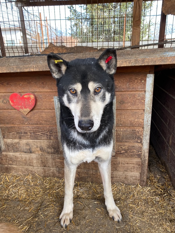 JARNO wird wahrscheinlich in seinem Kennel gemobbt oder zumindest klein gehalten. Er saß erst nur in der Hütte und traute sich nicht heraus, ging dann aber doch etwas trinken und sein Geschäft verrichten. Er ist ein sehr bescheidener, älterer Rüde. Uns gegenüber war er total zutraulich und ließ sich gerne streicheln. Leider hat er auch Hinterhandprobleme, bzw. läuft er hinten nicht rund.