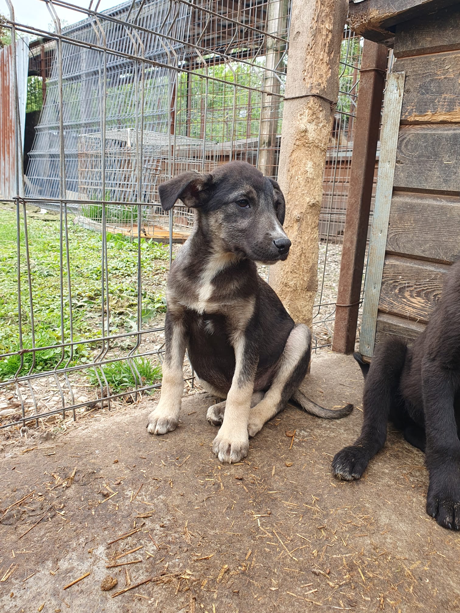 lebt auf 8qm mit 11 weiteren Welpen und einer scheuen Hündin im Welpen-Gehege