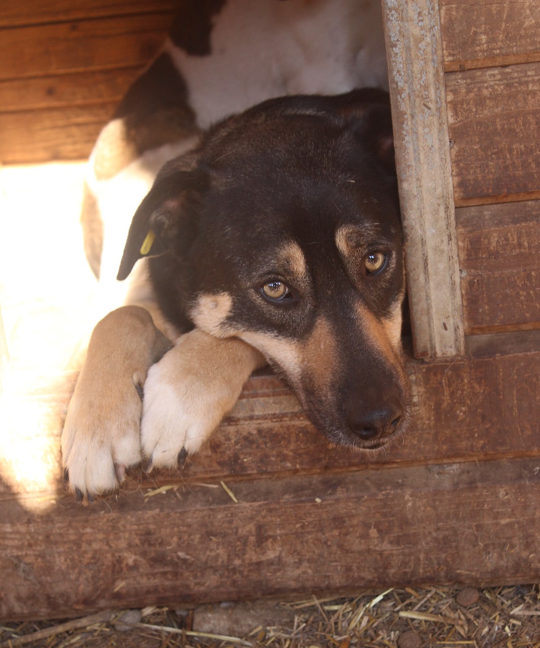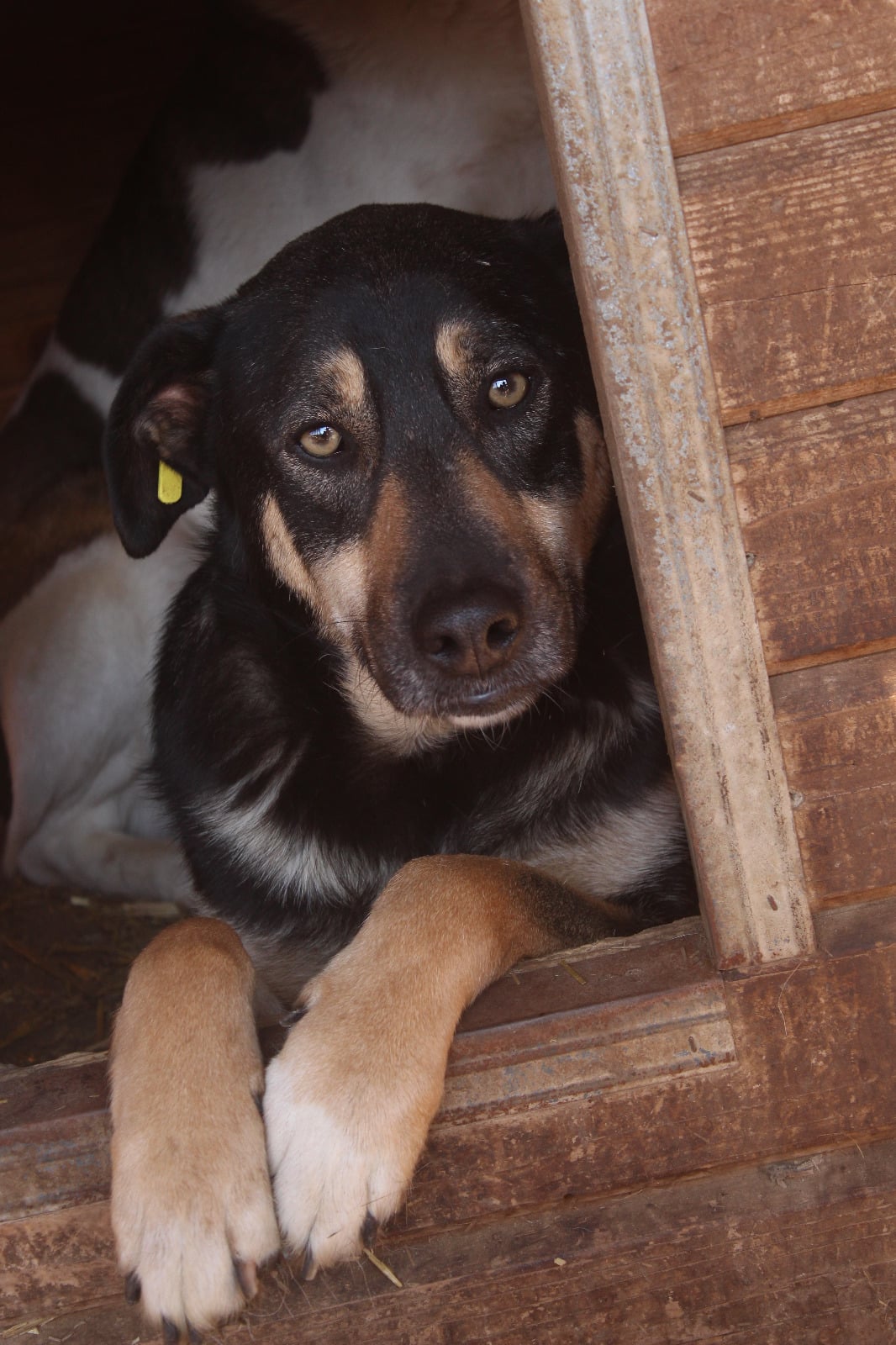 linke Vorderpfote verdreht, wahrschl. alter Bruch; seit mind. April 2022 im Shelter