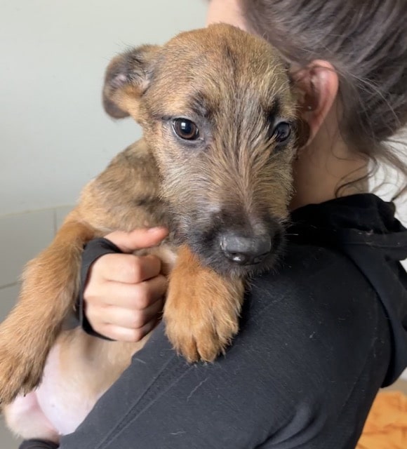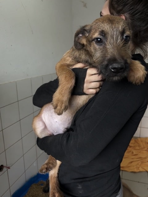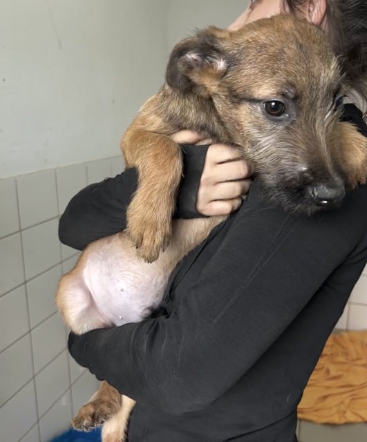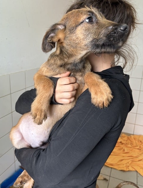Der zuckersüße JASPIS zeigte sich bei unserem Besuch sehr offen und freundlich. Rührend verteilte er Küsschen und ließ sich problemlos auf dem Arm halten. Er genoss sichtlich den kurzen Moment der Geborgenheit. Welpentypisch ist JASPIS sehr neugierig und verspielt und teilt sich verträglich mit seinen Geschwistern einen Raum. Doch der Shelter ist absolut der falsche Ort für solch aufgeweckte und lebensfrohe Hundekinder, die nur zu gern mit ihren Menschen die Welt erkunden würden. Wir hoffen sehr, dass JASPIS und seine Geschwister schon bald diese Chance erhalten.