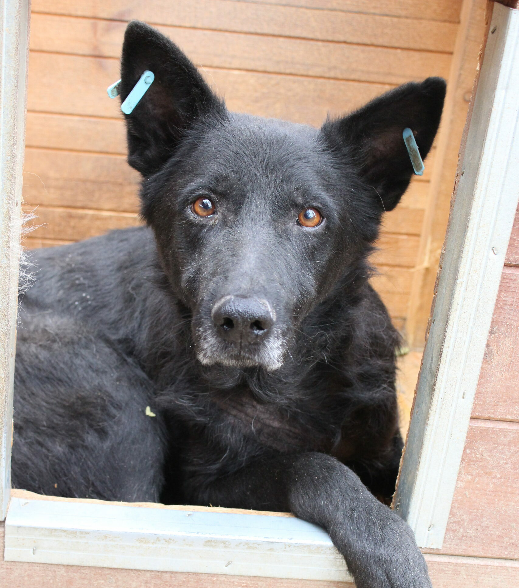 JAXX kommt in seinem Kennel leider nicht mehr gut zurecht. Er wird von einer kleineren Hündin in seinem Kennel untergebuttert und traute sich zuerst gar nicht aus der Hütte. Außerdem hat er beginnende Hautprobleme. Er ist weiterhin sehr gut anfassbar, verschmust und lieb.