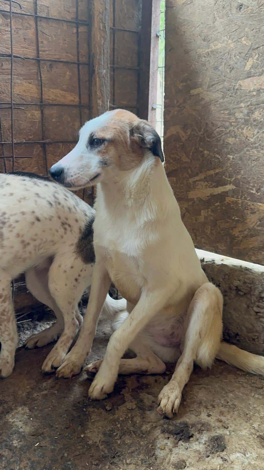Die zarte, junge Hündin haben wir neu im Kennel angetroffen. Sie brauchte ein klein wenig Zeit aufzutauen, war dann aber prima anfassbar. Sie ist sehr verträglich mit den anderen Kennelbewohnern und daher freut sie sich sicher über andere, entspannte Hunde im zu Hause, die sie ans Pfötchen nehmen können. Wir hoffen, sehr dass sie zeitnah gesehen wird, damit die anfängliche Schüchternheit sich nicht auswächst. Denn sie ist zutraulich und neugierig und möchte so gerne Sicherheit und Geborgenheit spüren. Alles was sie braucht sind souveräne Menschen, die ihr zeigen wie toll das Leben sein kann. Sie hat viel Potenzial, was nicht verschwendet werden sollte.