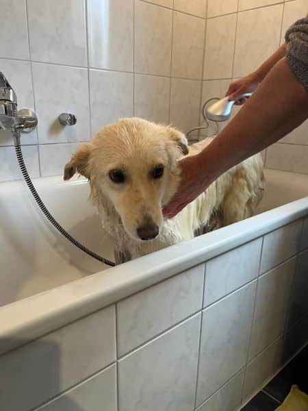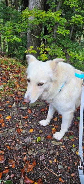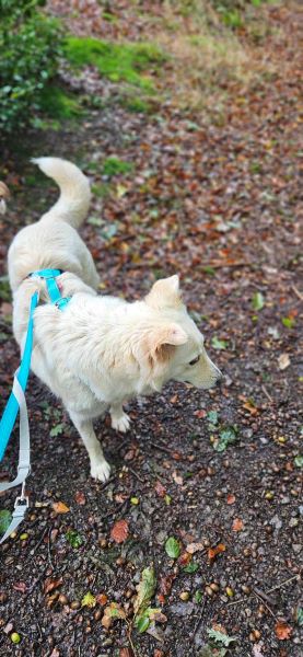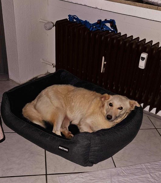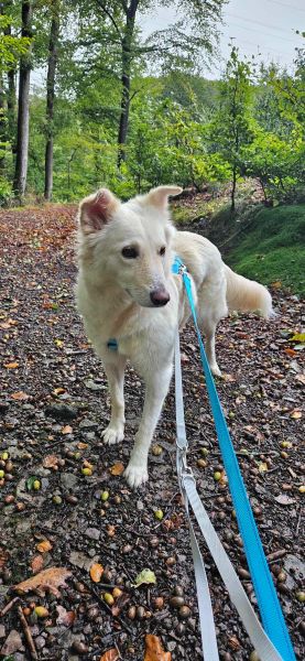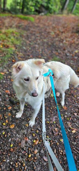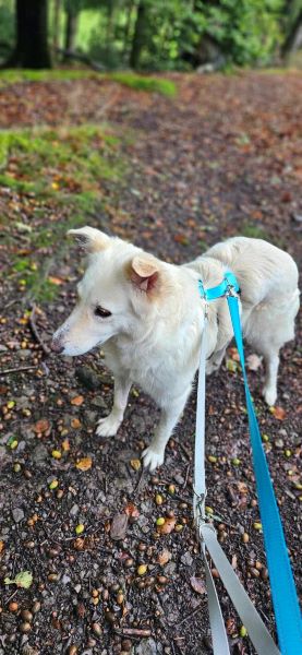 Jeanny kam Ende September 2024 auf ihrer Pflegestelle an, als wäre nichts einfacher. Sie war von der ersten Minute an stubenrein und ging eigentlich auch, nachdem sie endlich die Hausflurtreppen erklommen hat, am Geschirr als wenn sie nie was anderes gemacht hat.