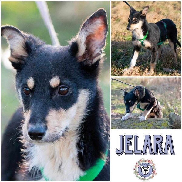 Jelara ist eine kleine, zarte Hündin die gerne Kontakt zum Menschen hat. Schmusen, auf dem Schoß sitzen und kuscheln und toben findet sie richtig prima. Sie hat ein typisch verspieltes und ungestümes Welpennaturel und geht offen und fröhlich durch die Welt. Auch von Hunden ist die kleine Zaubermaus sehr angetan und würde am liebsten zu jedem Kontakt aufnehmen.