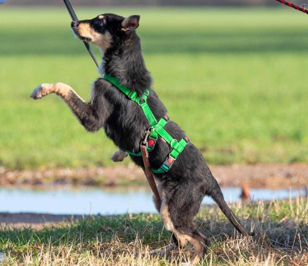 Die kleine Jelara ist erst seit 6 Monaten auf dieser Welt und erkundet diese schon wie eine Große. Sie geht richtig selbstbewusst an der Leine spazieren und ist dabei sehr interessiert an ihrer Umgebung. Ab und zu muss sie sich beim Menschen kurz rückversichern ob sie alles richtig macht und geht dann munter weiter.