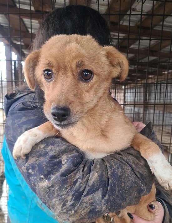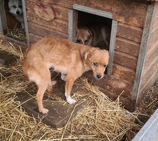 Hündin, kastriert geb. ca. 2020 Größe: ca. 35cm minimaler Unterbiss, hatte mal Welpen viel zu dünn (12/2022)