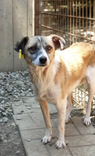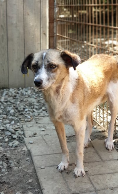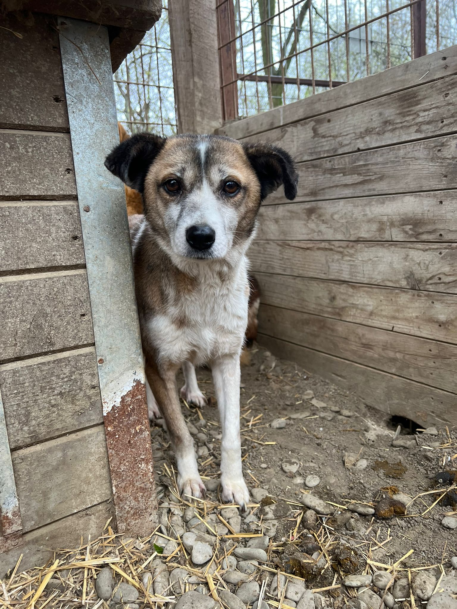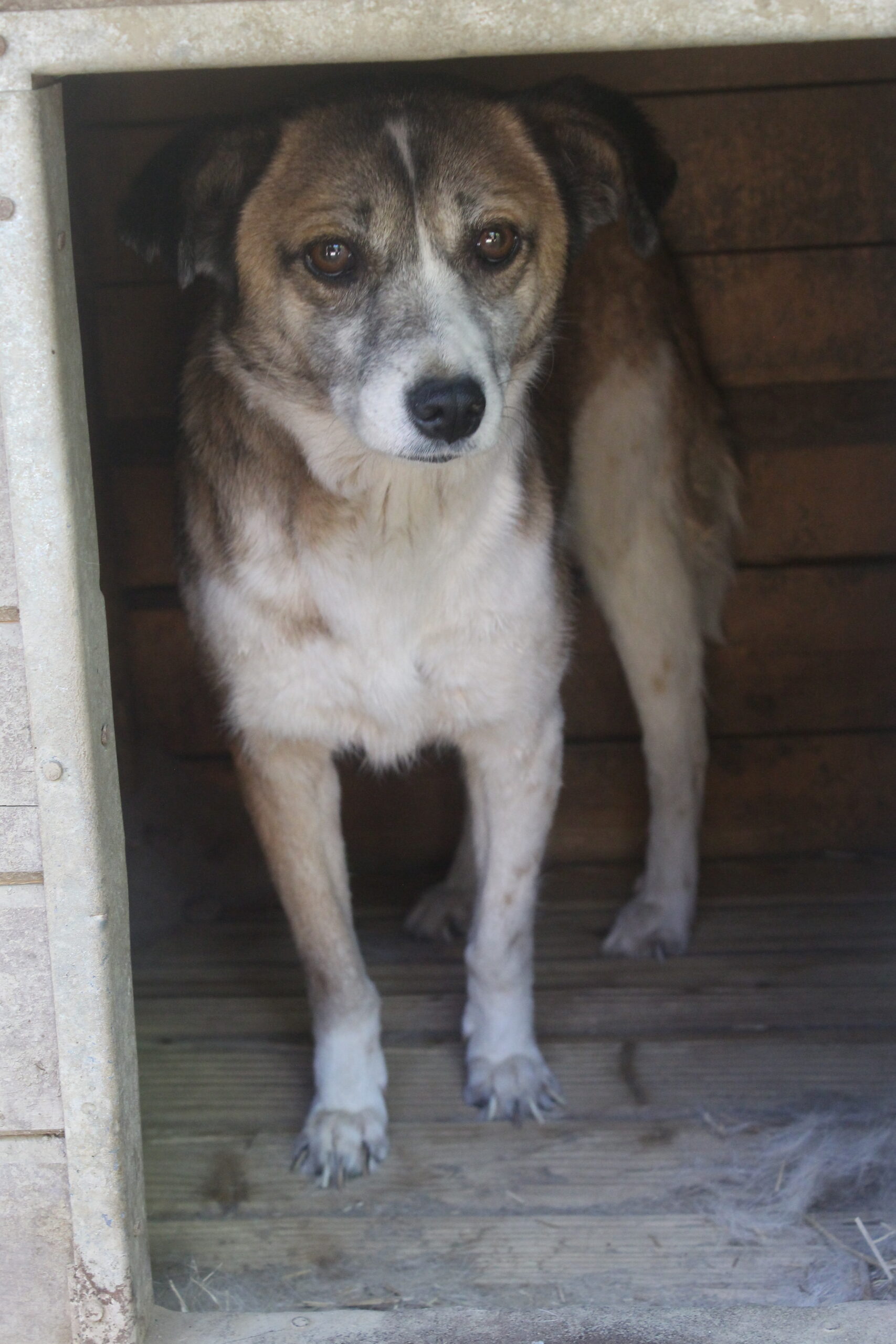 JELTE sitzt zurückgezogen in ihrer Hütte. Sie ist weiterhin neugierig, aber unsicher. Trotzdem nimmt sie Futter aus der Hand und ließ sich damit auch locken. Sie braucht einfach die richtigen Menschen, die sich der zarten Hündin annehmen.