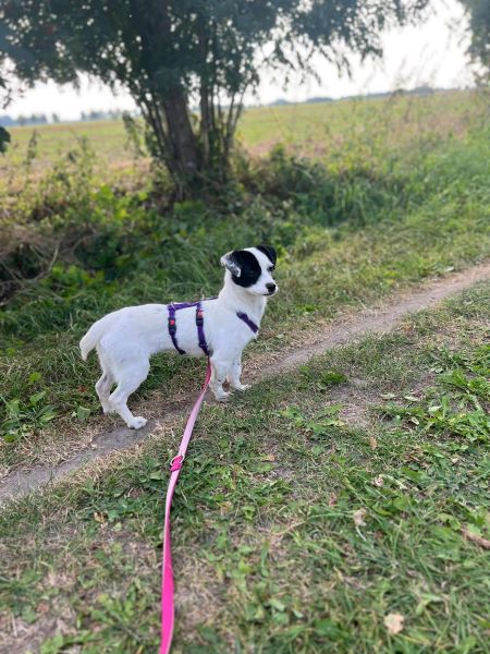 Unser Winzling Jemina ist auch soweit und möchte ihrer neuen Familie im wahrsten Sinne des Wortes in die Arme springen . Sie ist ein wahrer Springfloh und liebt alles und jeden…je enger am Menschen umso besser findet sie. Eine Frohnatur mit ordentlich Power auch klettern kann das kleine Mäuschen sehr gut . Also wenn Grundstück vorhanden muss der Zaun gut dicht und hoch genug sein sie passt drauf …drüber und drunter sonst . Mit ihren ca. 20 cm Körpergröße und 5 kg Gewicht ist sie wirklich ne zarte kleine Dame… inzwischen klappt die stubenreinheit gut und das an der Leine laufen auch. Allein bleiben wird geübt werden müssen …hier mit Nocci klappt das gut …zwar gibt es Protest wenn ich gehe aber sie beruhigen sich schnell . Gern wäre sie ein Zweithund und hätte gern Nocci vielleicht sogar mit dabei aber auch ein spielfreudiger freundlicher Ersthund ist willkommen . Die ist noch ein junger Hüpfer ca. am 04.07.2022 soll sie geboren sein,ist kastriert, geimpft und gechipt.