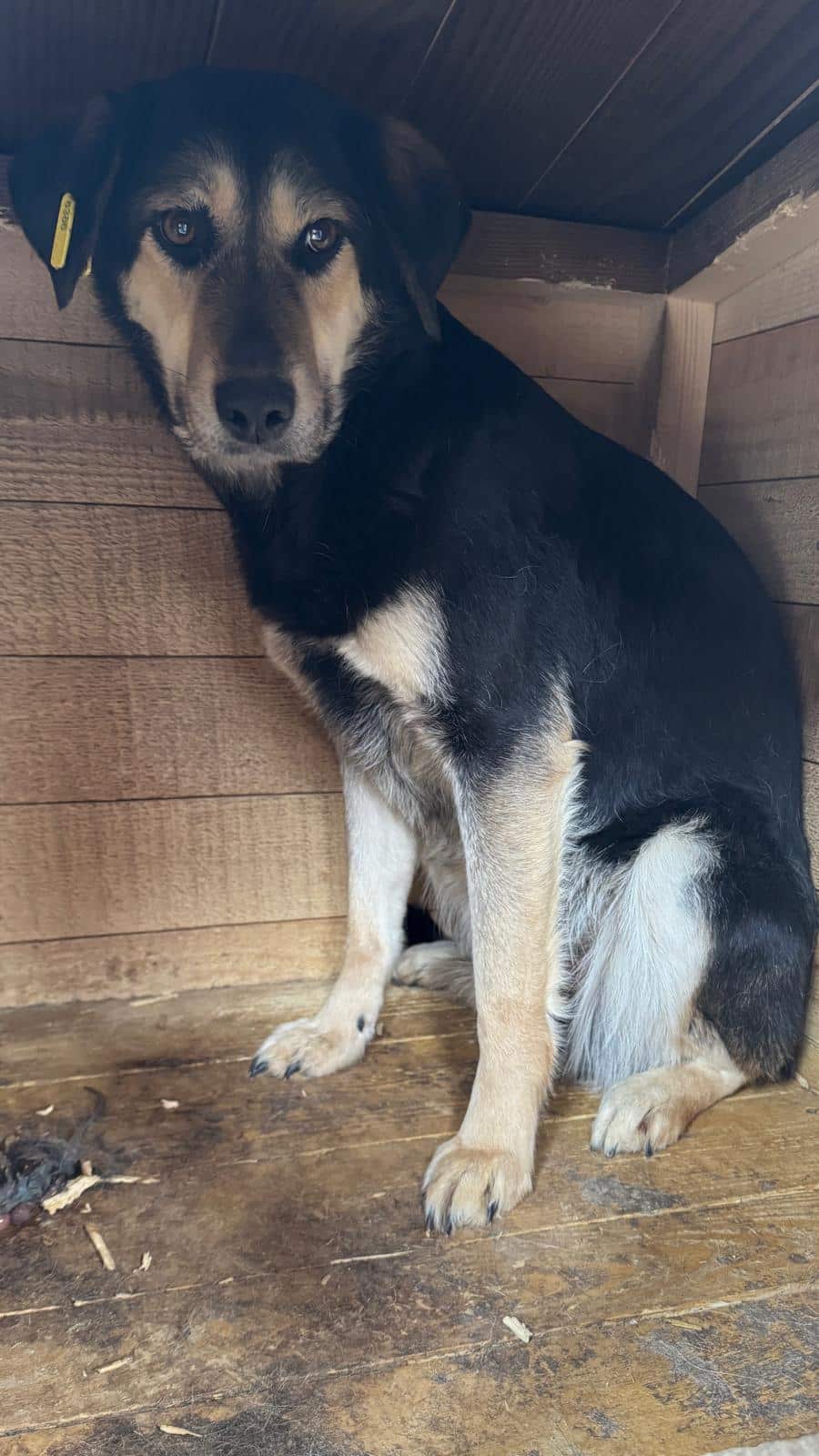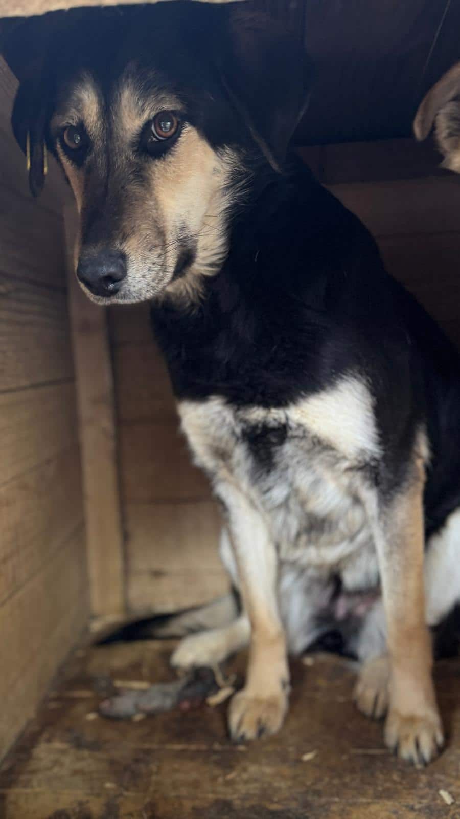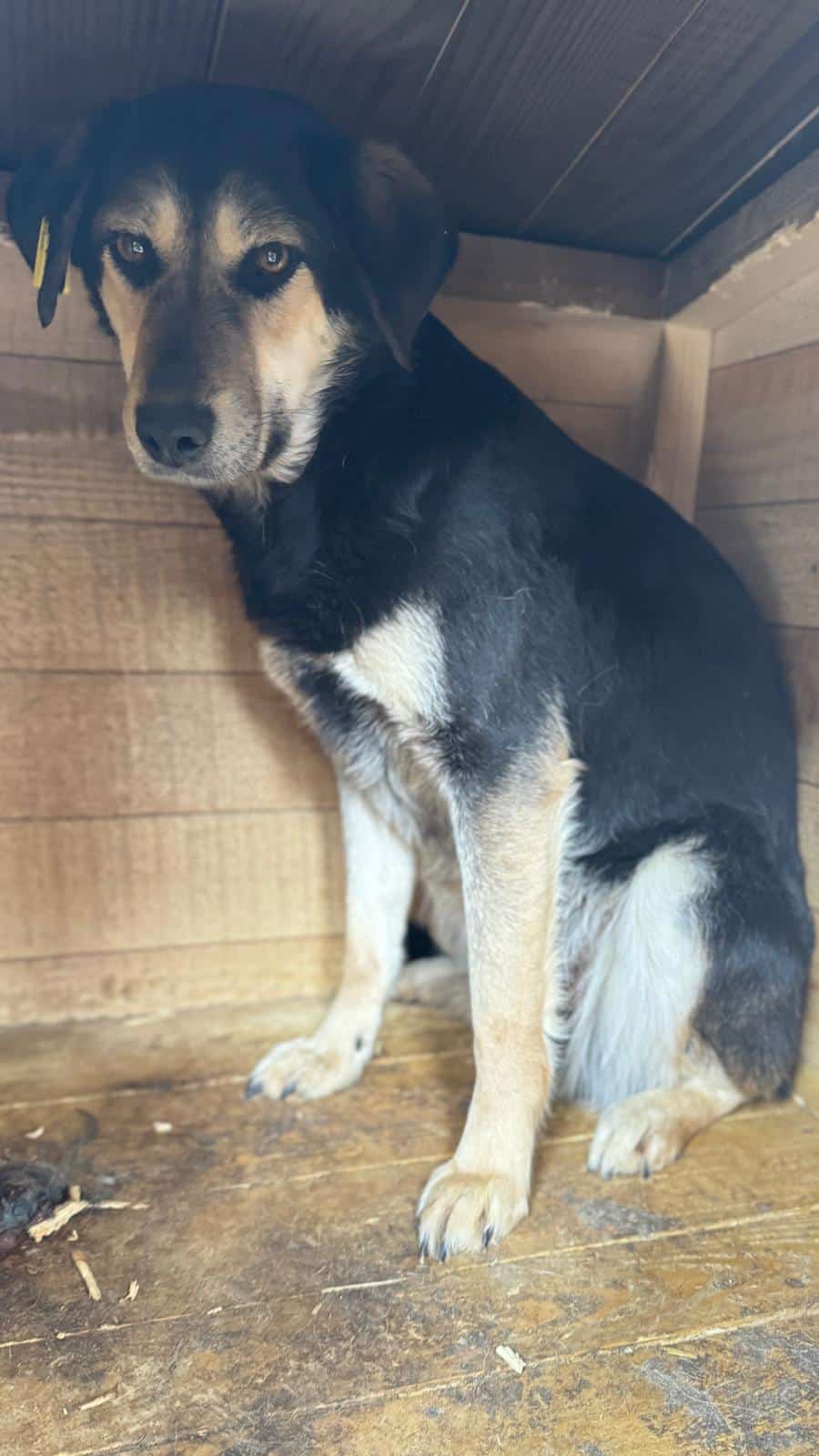JENAI ist weiterhin unsicher. Wir konnten sie diesmal in der Hütte vorsichtig berühren, aber es war ihr sichtlich unangenehm. Leider sitzt JENAI weiterhin mit ihren beiden, inzwischen erwachsenen Söhnen, und weiteren Hunden, die ebenfalls fast ausschließlich sehr unsicher sind, in einem Kennel.