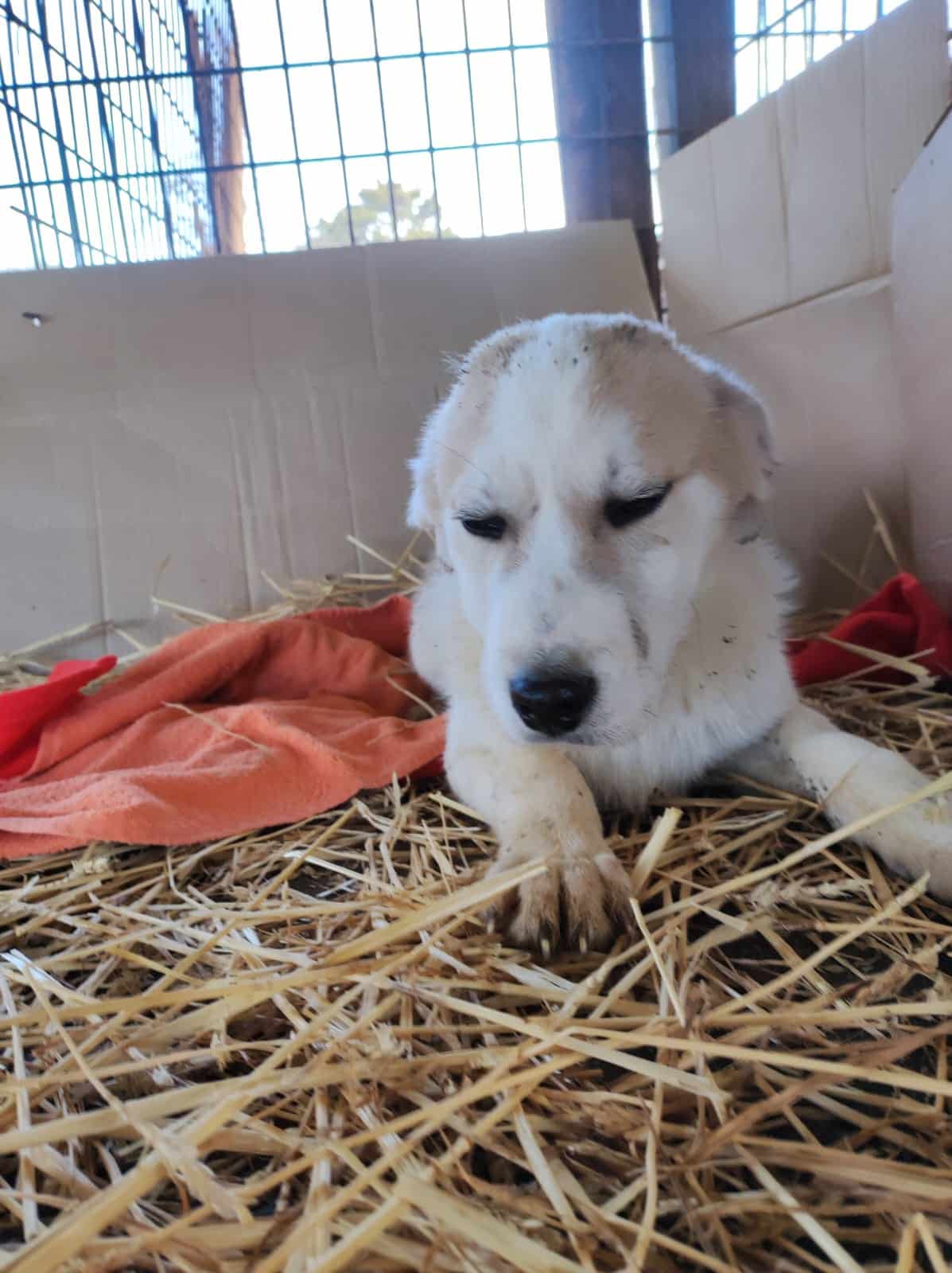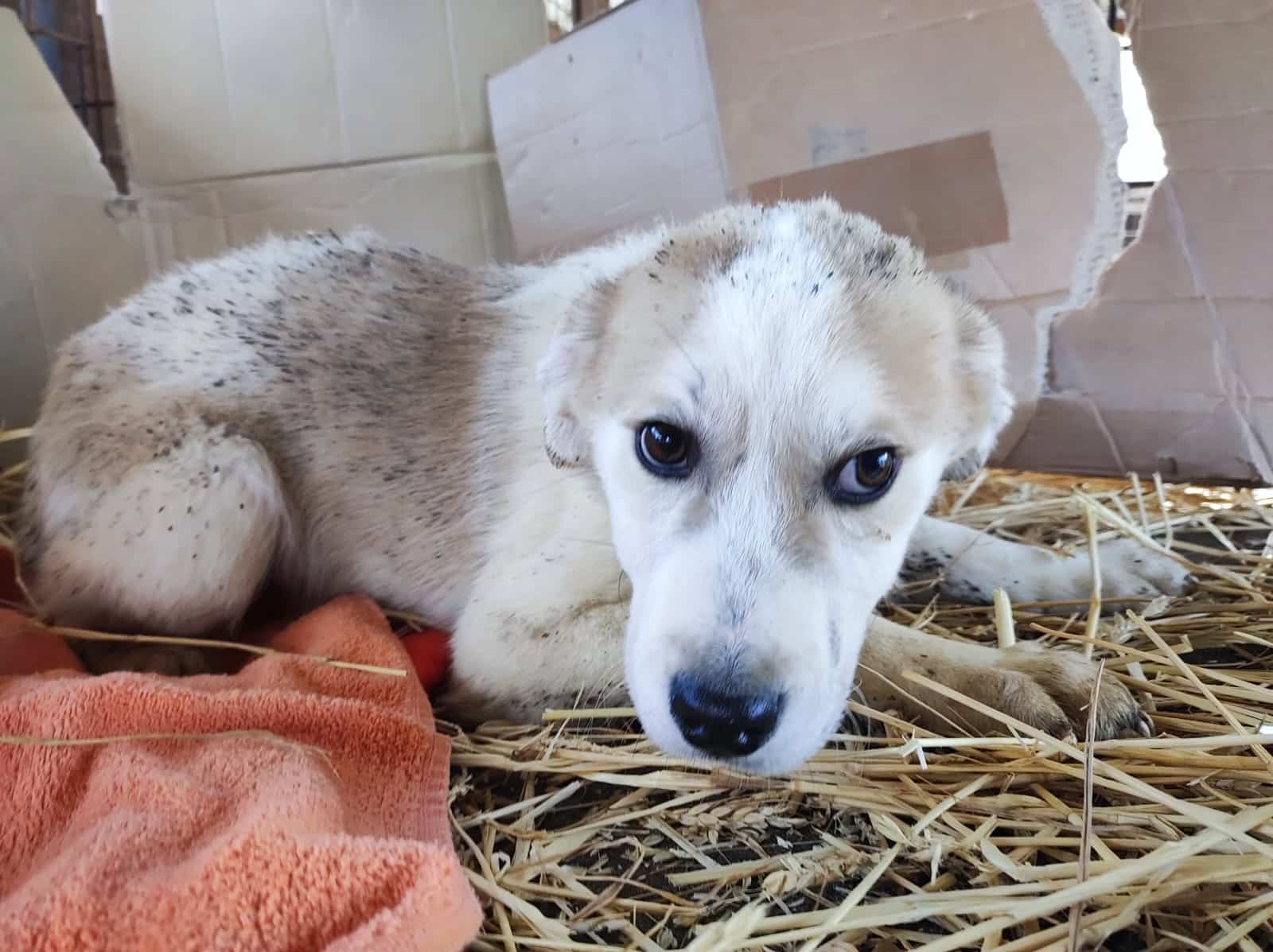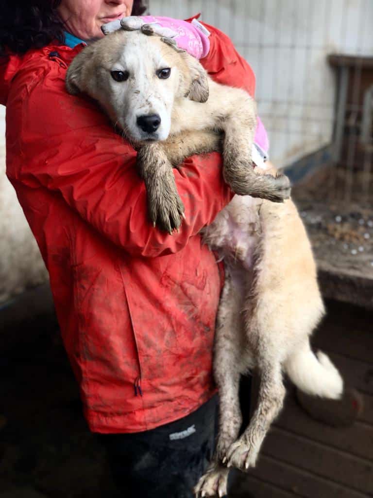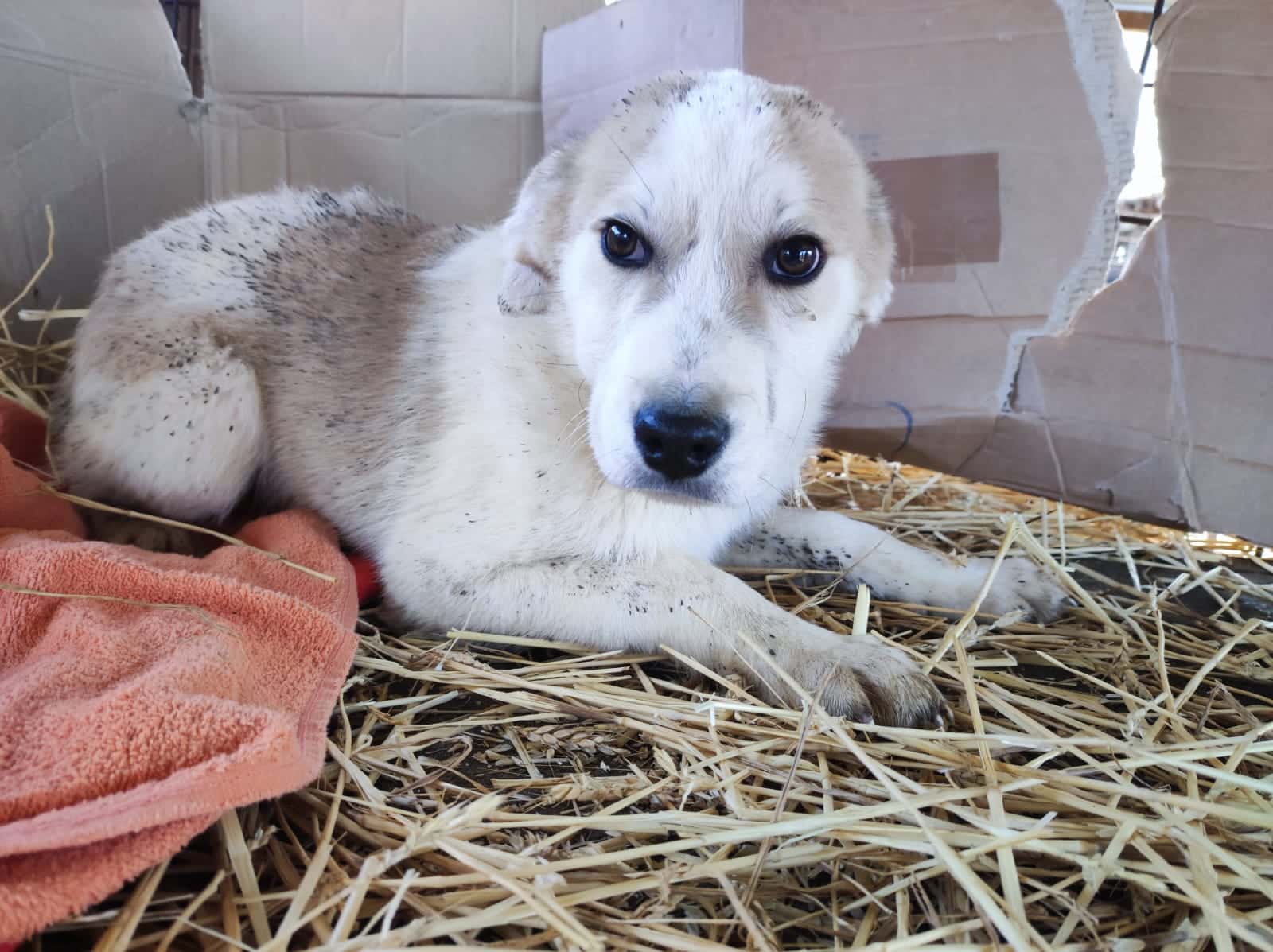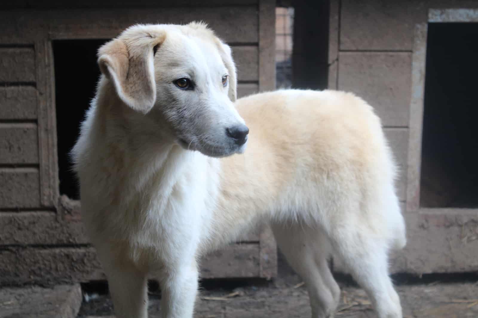 Wenige Wochen können bei Welpen und Junghunden so viel verändern – JINPA blieb diesmal lieber in der zweiten Reihe und beobachtete uns neugierig. Hier macht sich der fehlende menschliche Kontakt schon spürbar. Hochnehmen lassen wollte er sich nicht und zeigte erstes Abwehrverhalten. Wir hoffen, dass dieser bildhübsche Rüde die Möglichkeit erhält, zeitnah ausreisen zu dürfen. In einer ruhigeren Umgebung wird er sicherlich schnell auftauen.