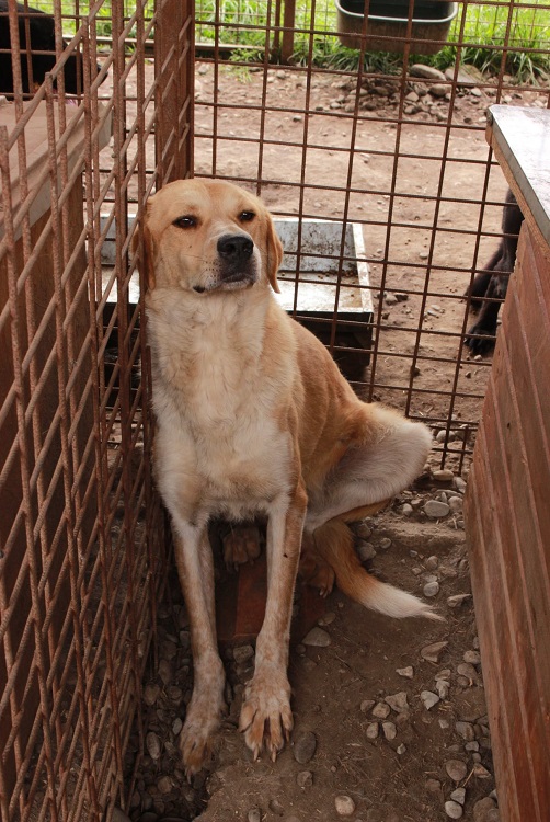 sehr verunsichert gut anfassbar, versteinert dann sehr friedlich mit anderen Hunden, sollte unbedingt Zweithund werden sehr dünn und gestresst