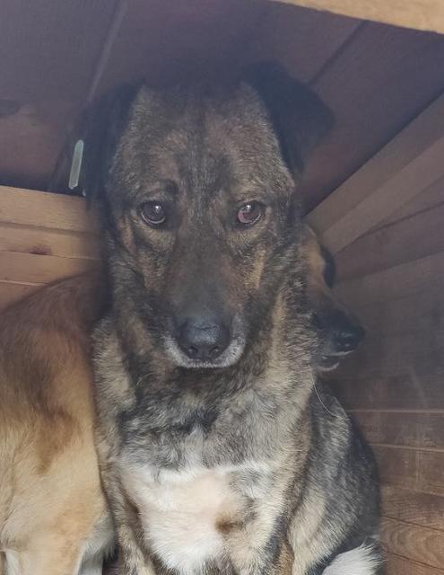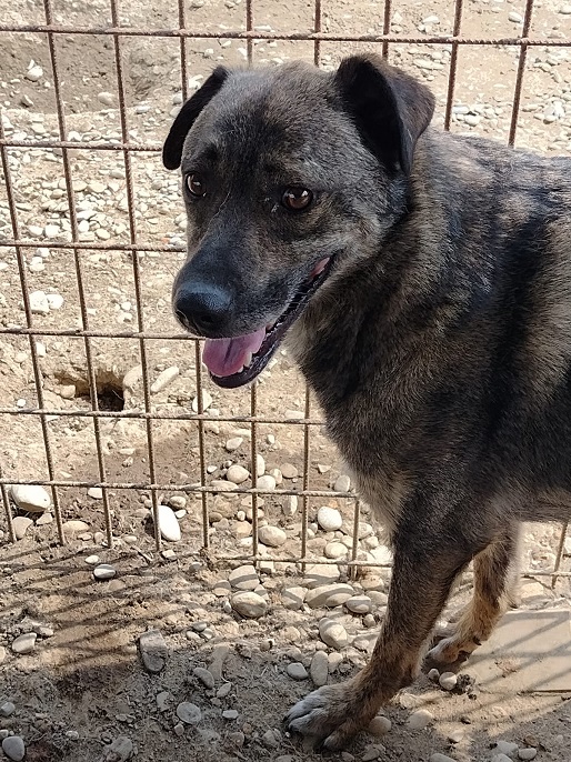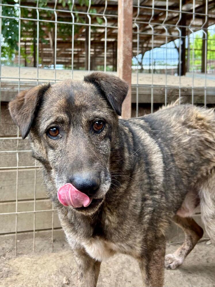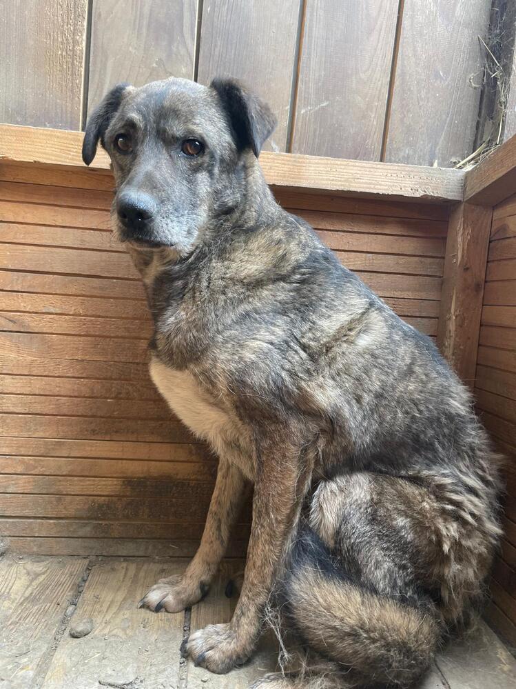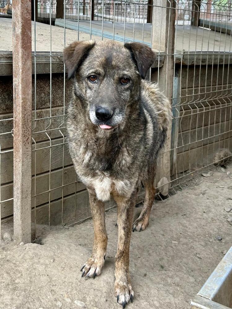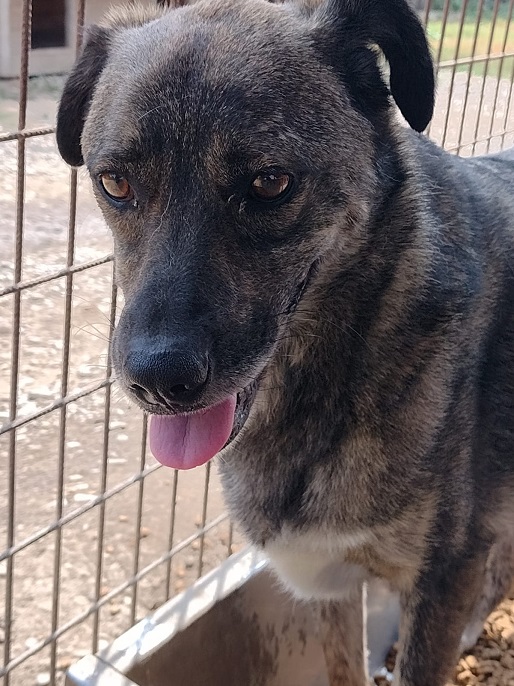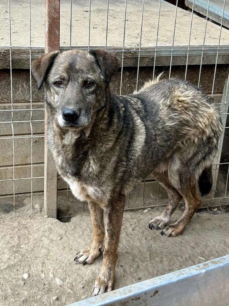 JOAQUIN lag während unserer Anwesenheit zunächst nur in der Hütte. Er wirkte völlig resigniert. Unsere Leckerli nahm er zögerlich aus der Hand. Als wir ihn in der Hütte bedrängten, konnten wir JOAQUIN gut anfassen. Und dann geschah das Erstaunliche: als wir aufhörten ihn zu streicheln und uns eigentlich einem anderen Hund zuwenden wollten, kam er aus der Hütte, beobachtete uns interessiert und wollte Leckerli. Diese nahm er nun aus der Hand und er schien die Abwechslung plötzlich zu genießen.