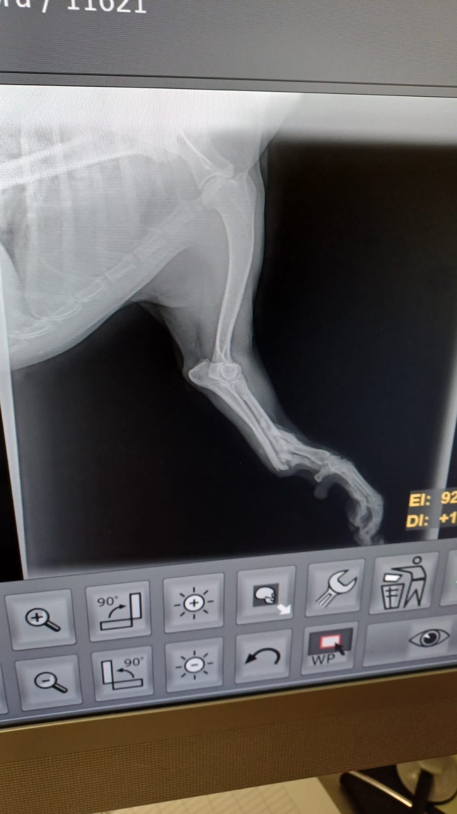 Leider stimmt etwas mit seiner linken Vorderpforte nicht, mit dieser humpelt er und wenn er sie aufsetzt, ist sie völlig durchtrittig und wirkt sehr instabil. Möglicherweise liegt hier eine (ältere) Verletzung vor.