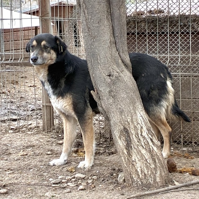 Unsere zarte JOELLE schlägt sich bereits seit mehr als 2 Jahren tapfer im riesigen Shelter durch und fristet dort in einem großen, gemischten Rudel verträglich ihr Dasein. Bevor wir den großen Kennel betraten, lag die hübsche Hündin entspannt auf einem Hüttendach. Menschenkontakt hatte JOELLE schon lange nicht mehr und so wusste sie nicht recht, was sie von unserem Besuch halten sollte. Sie lief zwar durch den großen Kennel, hielt sich dabei aber dauerhaft hinter Bäumen, Hütten und den anderen Hunden auf, um möglichst viel Abstand zu uns einzuhalten. Dabei traute sie sich immerhin, unsere hingeworfenen Leckerlie vom Boden zu naschen. Annäherungsversuchen wich sie gekonnt aus. Für die sensible JOELLE suchen wir einen ruhigen Platz bei erfahrenen Menschen, die sie mit viel Verstand behutsam an die Pfote nehmen und ankommen lassen. Von einem souveränen Ersthund könnte JOELLE sich prima abschauen, dass man sich in der Menschenwelt entspannen und die unbekannte Ruhe genießen kann. Wir wünschen dieser Hundedame so sehr, dass sie ihre zweite Lebenshälfte in Liebe und Geborgenheit verbringen kann.