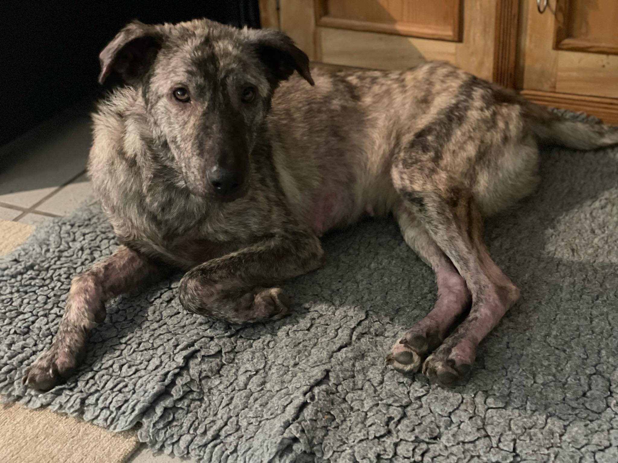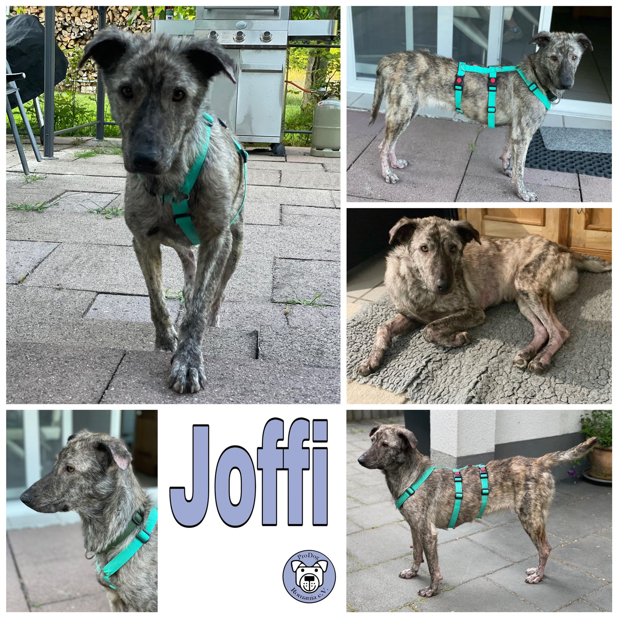 Joffi hat in Rumänien/Bucov sehr gelitten und vermutlich hatte sie auch davor kein behütetes Zuhause: stark untergewichtig und mit schlechter Haut kam sie Ende Juni 2022 zu uns auf die Pflegestelle.