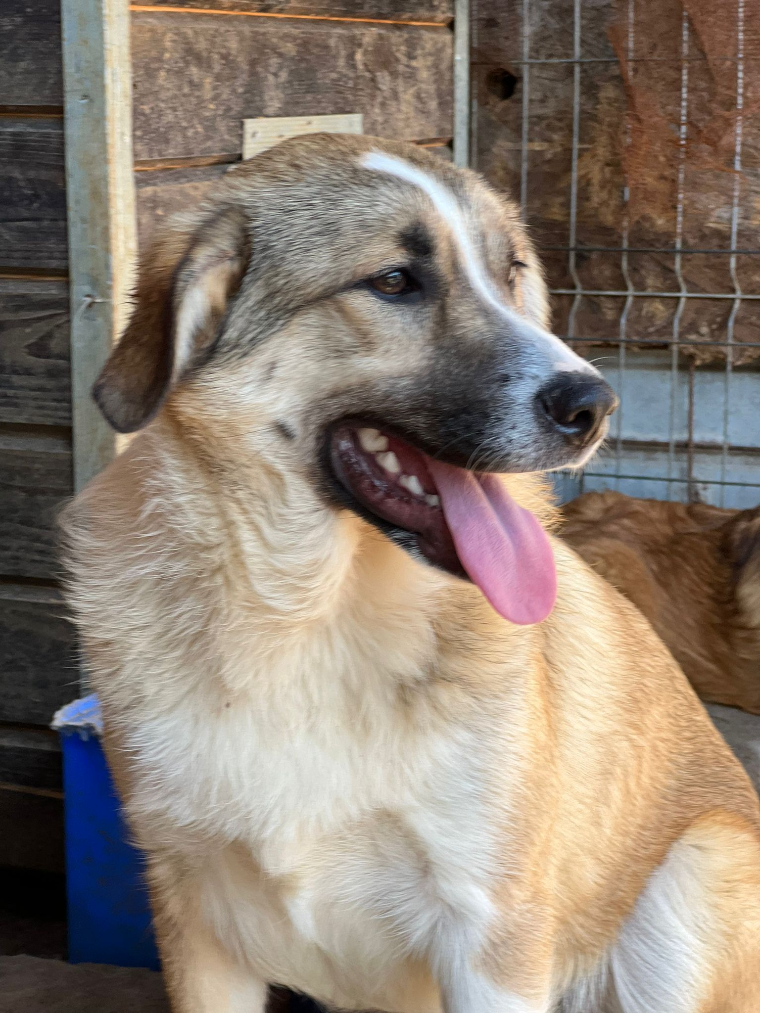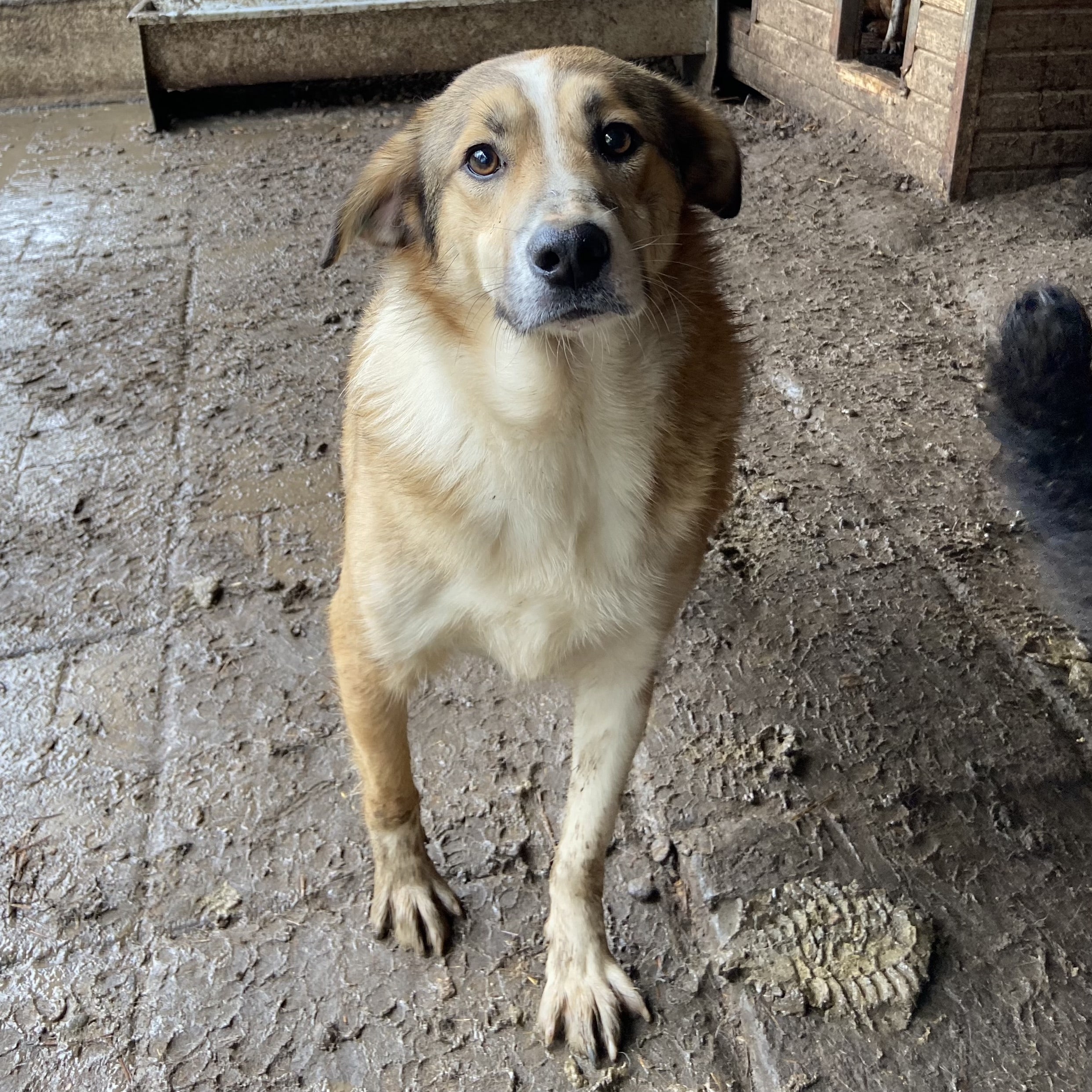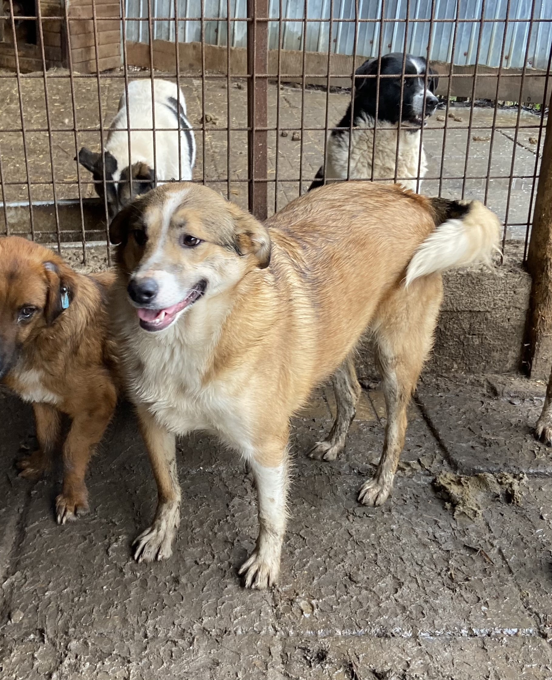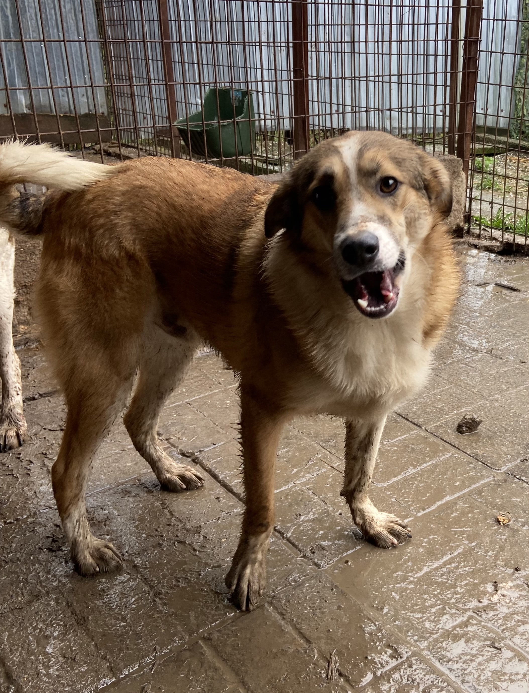 JOGIist weiterhin ein freundlicher, noch etwas unsicherer Rüde. Er ist einer der Mutigsten in seinem Kennel und möchte gerne Kontakt haben, er weiß einfach nur nicht so richtig, wie das geht. Er nahm gerne unsere Leckerlies aus der Hand und wir konnten ihn vorsichtig an der Schnauze berühren, er weicht dann aber zurück.
