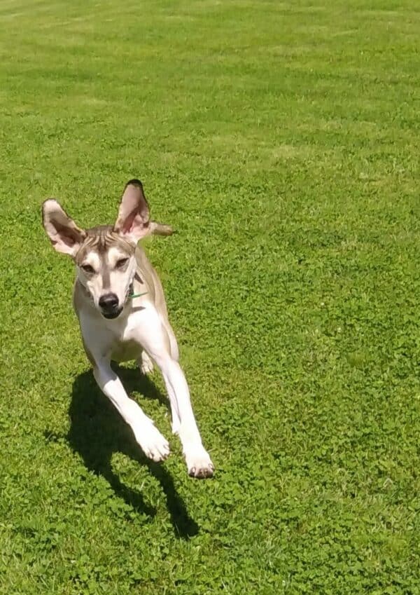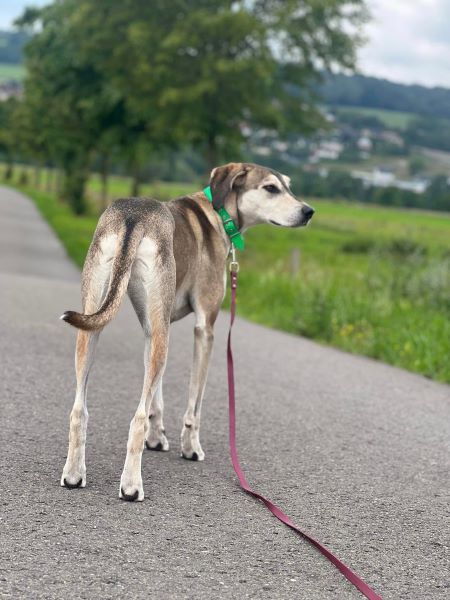 Wesen & Zutraulichkeit (Character & Trustworthiness) | Jagdtrieb, offen (open), freundlich (friendly), neugierig (curious), sehr menschenbezogen (very people-related), gerne anfassbar (likes to be touched), überall anfassbar (touchable everywhere), anfassbar (touchable), nimmt Leckerchen (takes goodies), zutraulich (trustful), unsicher (insecure), gerne Zweithund (happy second dog), benötigt feste Bezugsperson (needs a permanent reference person) |