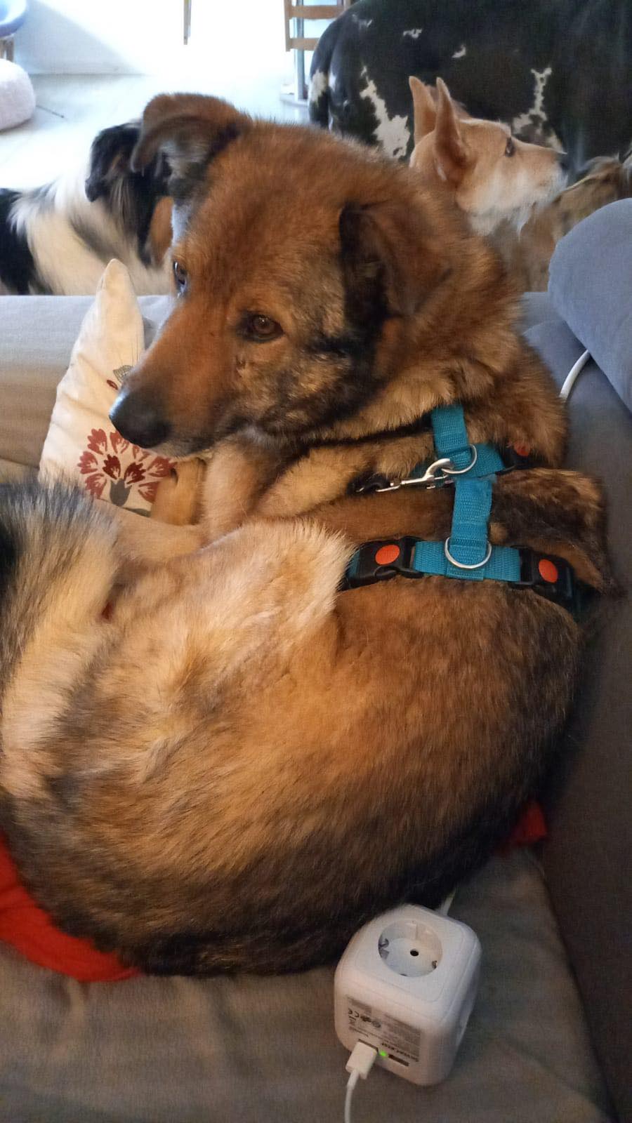 Das alleine bleiben mit anderen Hunden zusammen ist kein Problem für ihn.