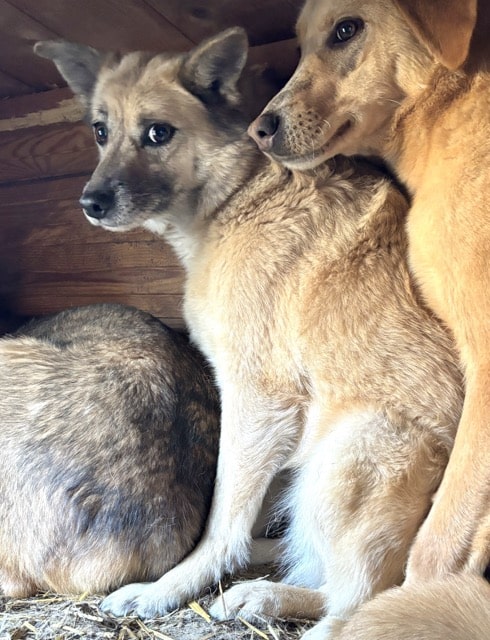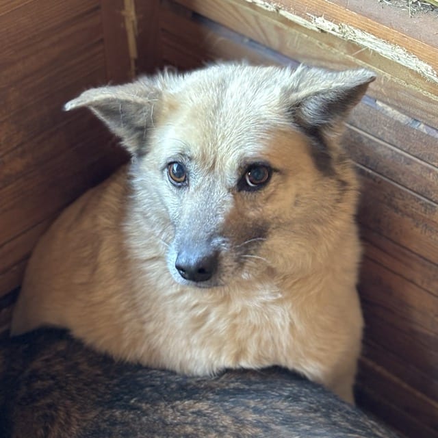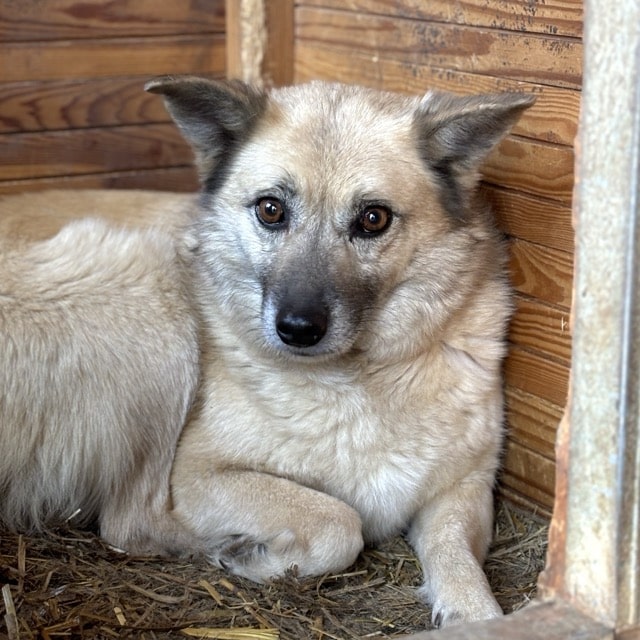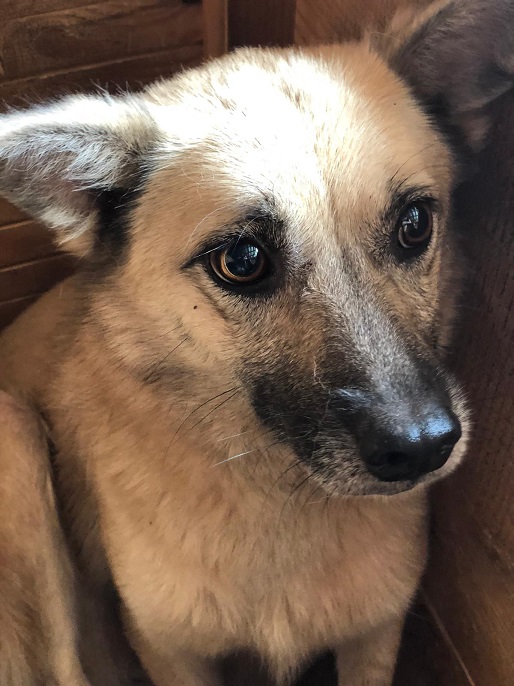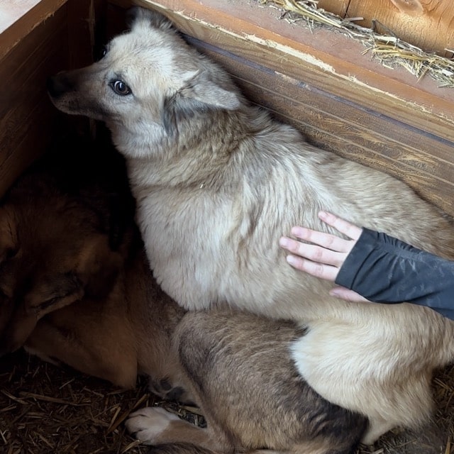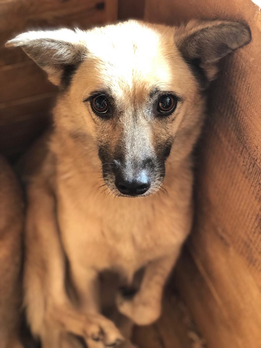 Die kleine JONA blieb die ganze Zeit während unseres Besuches lieber in der Hütte. Bei geöffnetem Hüttendach konnten wir sie behutsam streicheln. Es war sichtlich ungewohnt und etwas gruselig für sie, aber sie ließ es tapfer geschehen, ohne Abwehrreaktionen zu zeigen. Auch als wir den anderen Hund in der Hütte streichelten, blieb sie in ihrer Ecke sitzen und flüchtete nicht, obwohl die Möglichkeit gegeben war. Leckerlie mochte sie in unserer Gegenwart nicht naschen. Zu sehr konzentrierte sie sich darauf, uns aufmerksam mit ihren süßen Kulleraugen zu beobachten. JONA ist eine sehr schüchterne kleine Hündin, die bei Berührungen unter Bedrängung absolut defensiv blieb. Sie kennt das Zusammenleben mit Menschen einfach nicht, denn von ihren sechs Lebensjahren hat sie bereits unvorstellbare fünf im Shelter verbracht… Mit den anderen Hunden im Kennel scheint sie verträglich. Wir suchen für die kleine zarte JONA einen ruhigen und liebevollen Platz bei erfahrenen Menschen, die wissen, wie man die Eingewöhnungszeit für die süße JONA gestalten sollte, damit sie in ihrem Tempo ankommen und aufblühen darf. Ein souveräner Ersthund, an dem sie sich orientieren kann, wäre optimal.