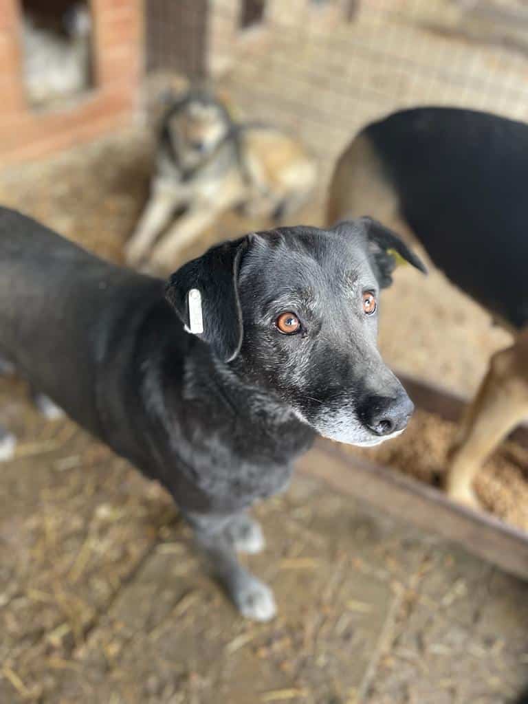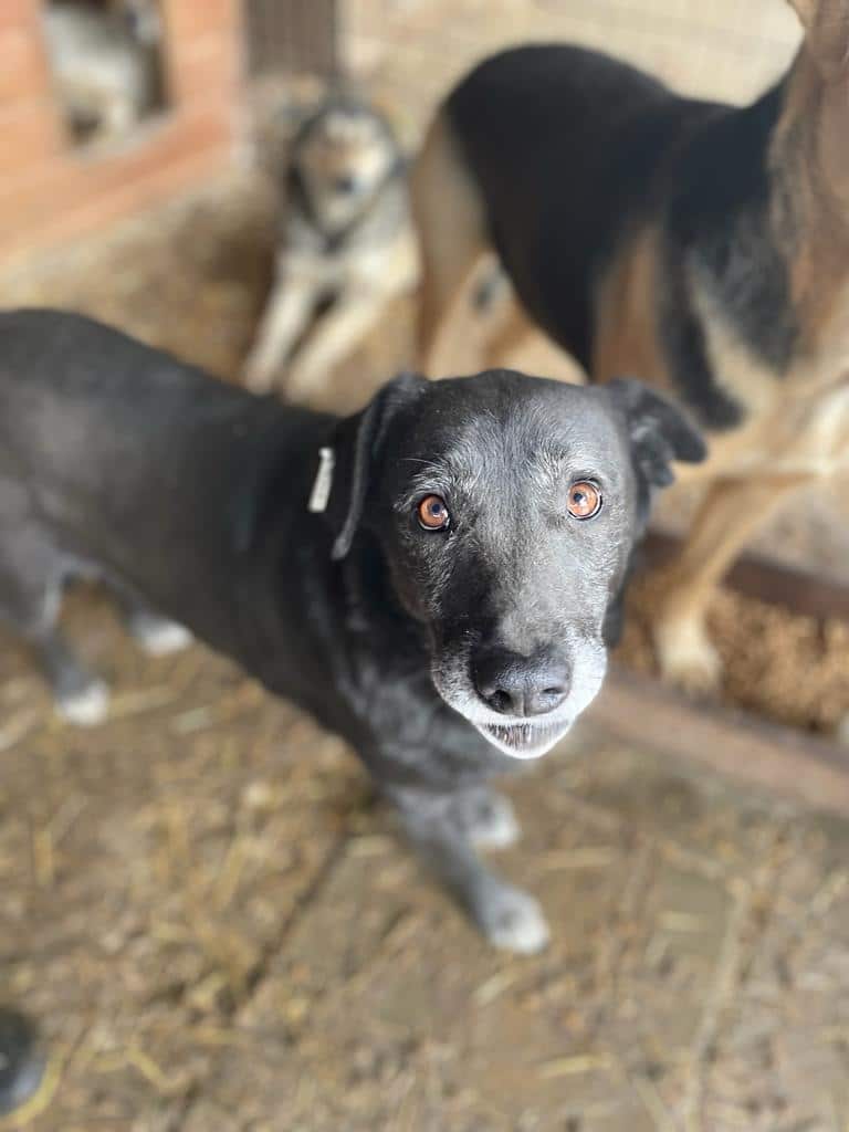 Diese goldige Omi lag ganz entspannt in ihrer Hütte als wir in den Kennel kamen. Kaum schenkten wir ihr Aufmerksamkeit kam sie raus und genoss die Streicheleinheiten. Sie war ab dann immer ganz entspannt an unserer Seite ohne aufdringlich zu sein.