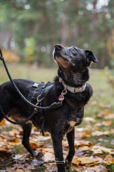 Temperament & Verträglichkeit (Temperament and Compatibility) | ruhiges Wesen (calm being), mittleres Temperament (medium temperament), verträglich mit anderen Hunden (compatible with other dogs), Einzelplatz wünschenswert (single place desired) |