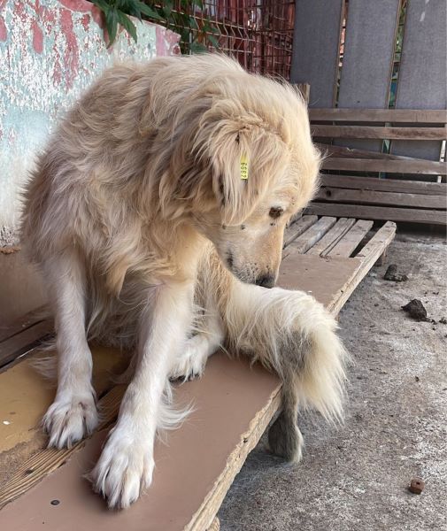 JONNE ist wieder aus der Klinik zurück. Er wurde geschoren und sitzt jetzt zu seiner eigenen Sicherheit im Transportwägelchen. In den Kennel, in dem er gebissen wurde, kann er nicht zurück und auch eineer Kennel steht im Moment nicht zur Verfügung. JONNE sollte jetzt bitte dringend ausreisen!