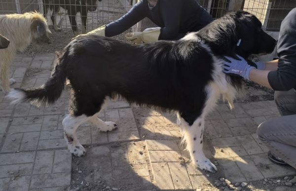 JORDY blieb bei unserem Besuch zunächst in der Hütte. Als Leckerli verteilt wurden, verließ er sie, um sich ebenfalls Leckerli bei uns abzuholen. Zu uns war er stets freundlich, nahm Leckerli aus der Hand und wir konnten ihn auch streicheln. In der gemischten Hundegruppe, in der er lebt, zeigt er sich verträglich. Beim Laufen zeigt sich, dass seine Hinterhand instabil ist, wodurch er oft das Gleichgewicht verliert und zur Seite kippt. Das macht ihm das Leben im Shelter besonders schwer. So ein Hund sollte nicht unter diesen Umständen leben müssen und hätte eine ruhigere Umgebung verdient, in der er ohne Belastungen leben und sich wohlfühlen kann.