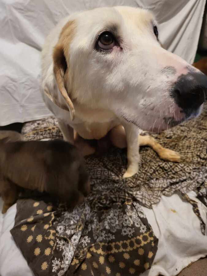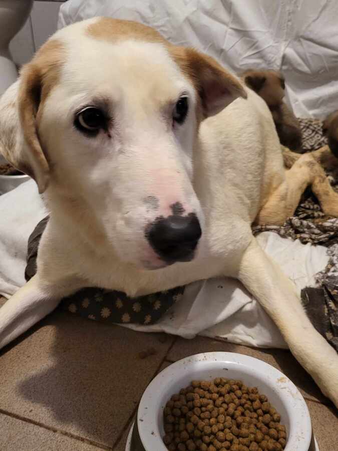 JORGE liebt es, Zeit mit Menschen zu verbringen und zeigt eine bemerkenswerte Geduld und Zuneigung, selbst wenn die kleinen Welpen um ihn herumtollen und spielen. Er ist der perfekte Babysitter für die kleinen Energiebündel.