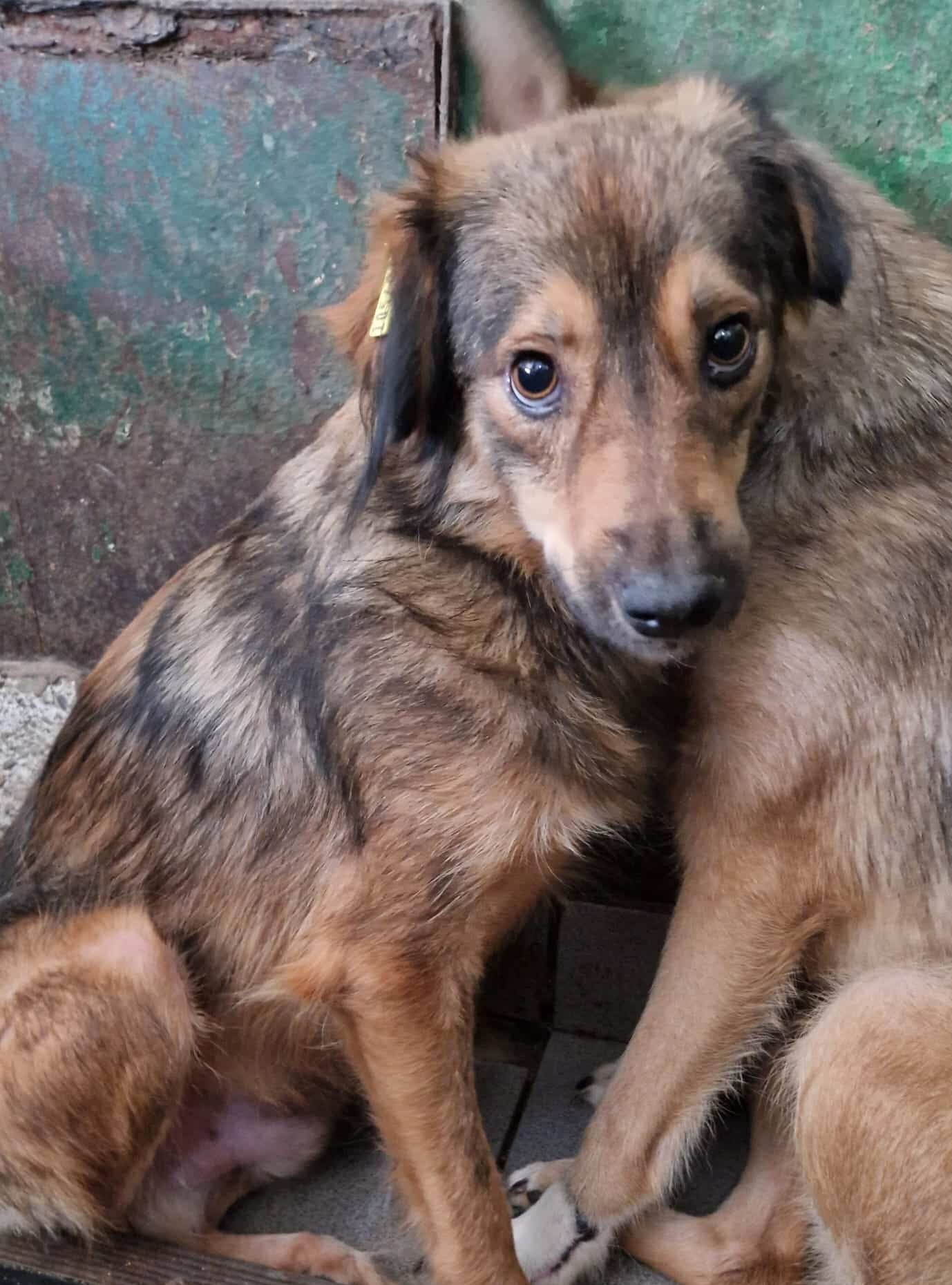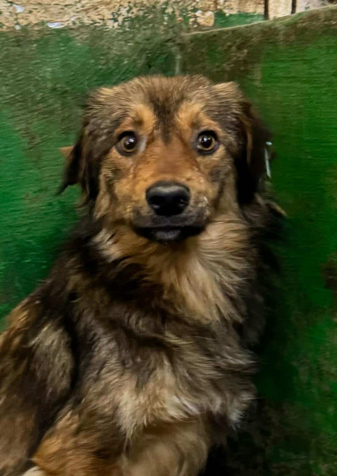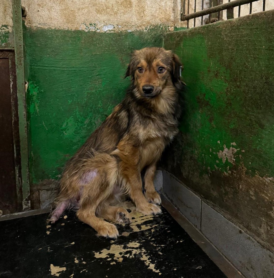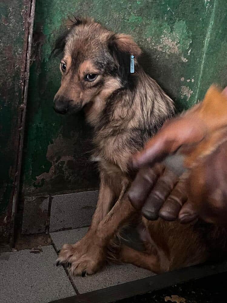 Der kleine, schüchterne Hundemann JORY sitzt immer noch in der Ecke im dunklem Vetkennel. JORY ist weiterhin unsicher, war jedoch anfassbar. Mit den anderen Hunden war er verträglich.