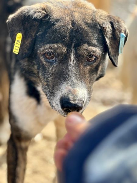 Er nahm schnell Leckerchen aus den Fingern. Zu mehr fehlte leider noch der Mut. Wer sich mit noch unsicheren Auslandshunden auskennt, wird ihn in wenigen Wochen zutraulicher bekommen. Idealerweise im Zusammenspiel mit einem souveränen Zweithund. Er ist auch überhaupt nicht futterneidisch und wirkt sehr verträglich. Vielleicht können seine Augen auch eines Tages wieder lächeln, sollte man ihn zwischen den Tausenden von Hunden für sich entdecken.