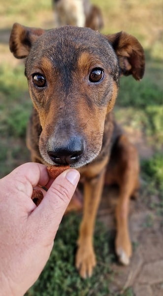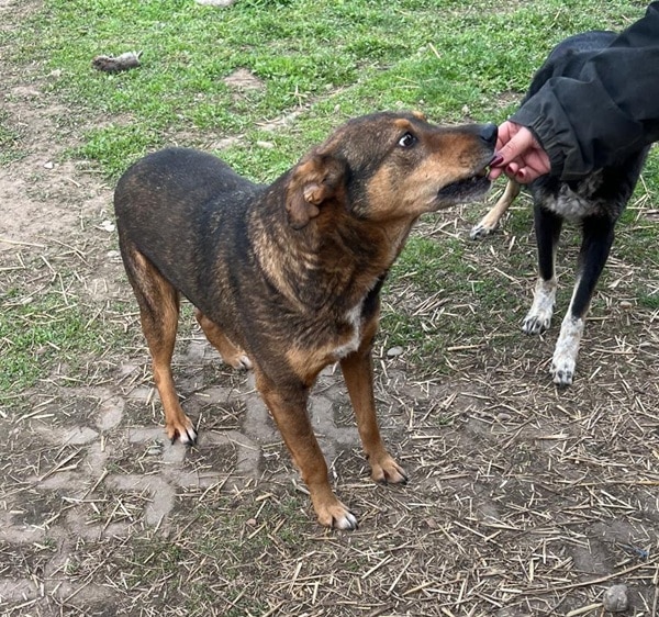 Leider merkt man ihm an, dass er als Welpe nicht genügend Streicheleinheiten erfahren hat, sodass er noch nicht weiß, dass Menschen etwas ausgesprochen Positives sein können.