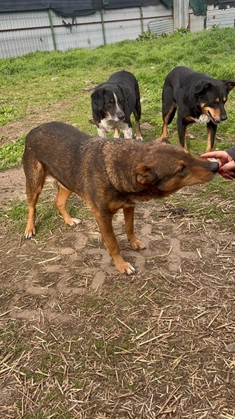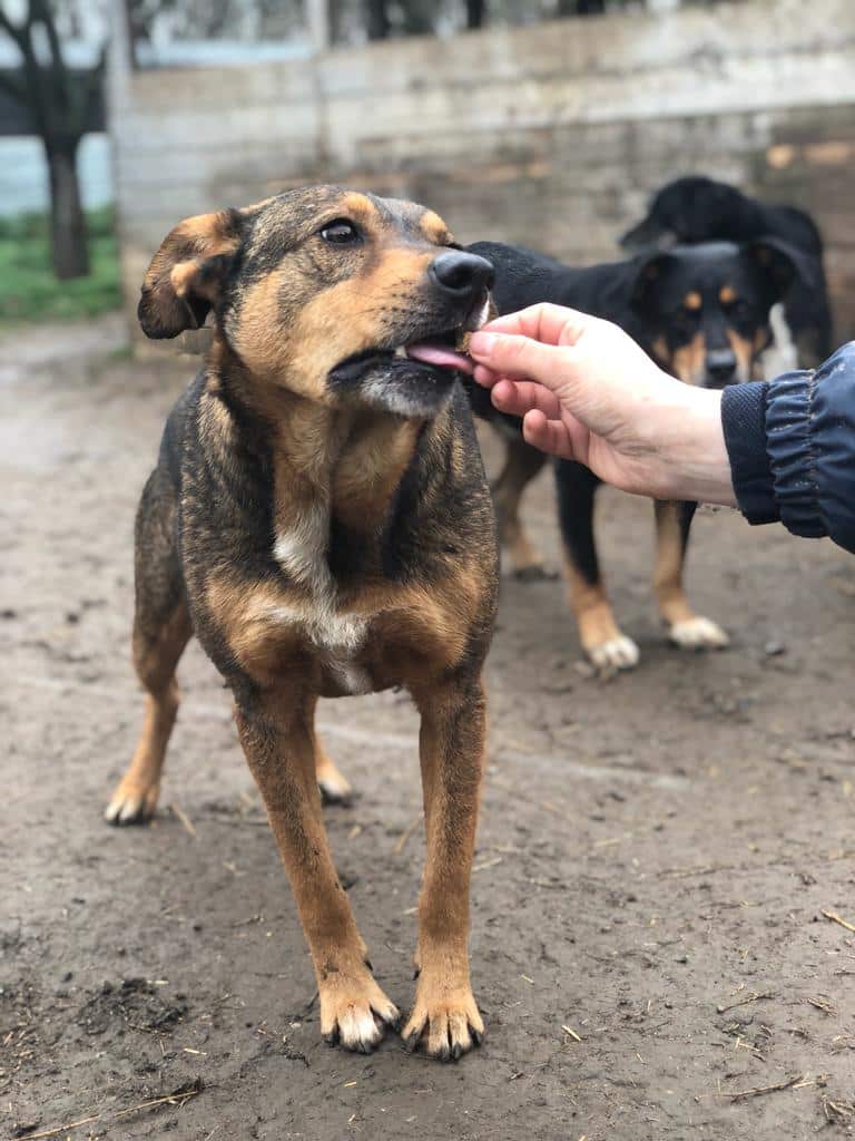JOSCHI lebt weiterhin in einer gemischten Hundegruppe und versteht sich dort auch gut mit allen. Er ist der Mutigste in seiner Gruppe und ließ sich auch sanft von uns streicheln, dann verließ ihn aber wieder der Mut.