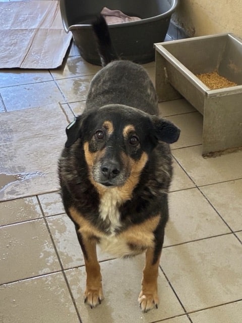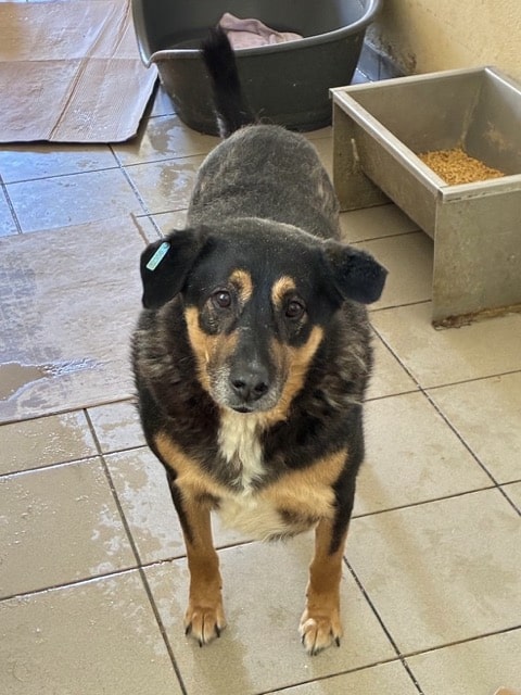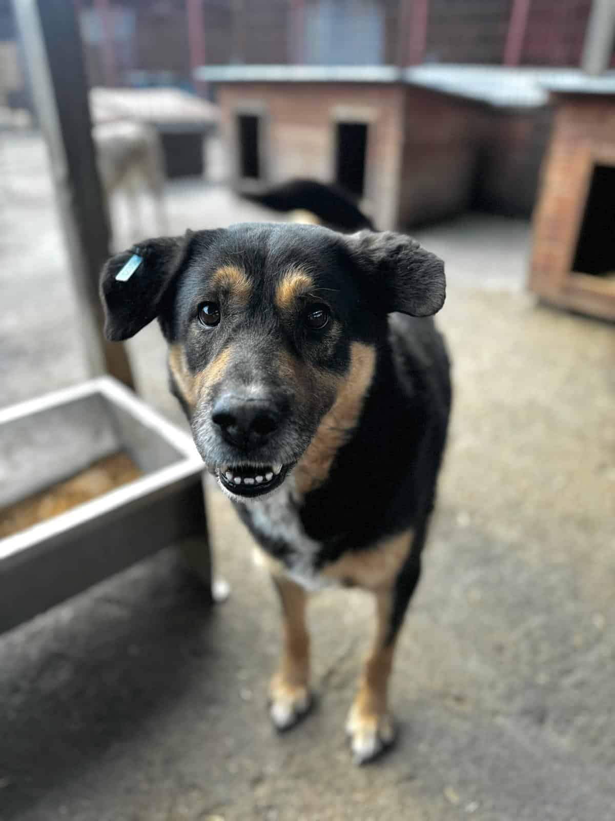 JOSCHO begrüßte uns bereits an der Kenneltür. Er hat sich sehr über unseren Besuch gefreut – eine willkommene Abwechslung im eintönigen Shelteralltag. Nach wie vor ist der tolle Kerl aufgeschlossen, freundlich und neugierig und hat die mitgebrachten Leckerchen dankbar angenommen. JOSCHO hat eine Umfangsvermehrung vorne links an der Brust. Die zuständige Tierärztin ist informiert.