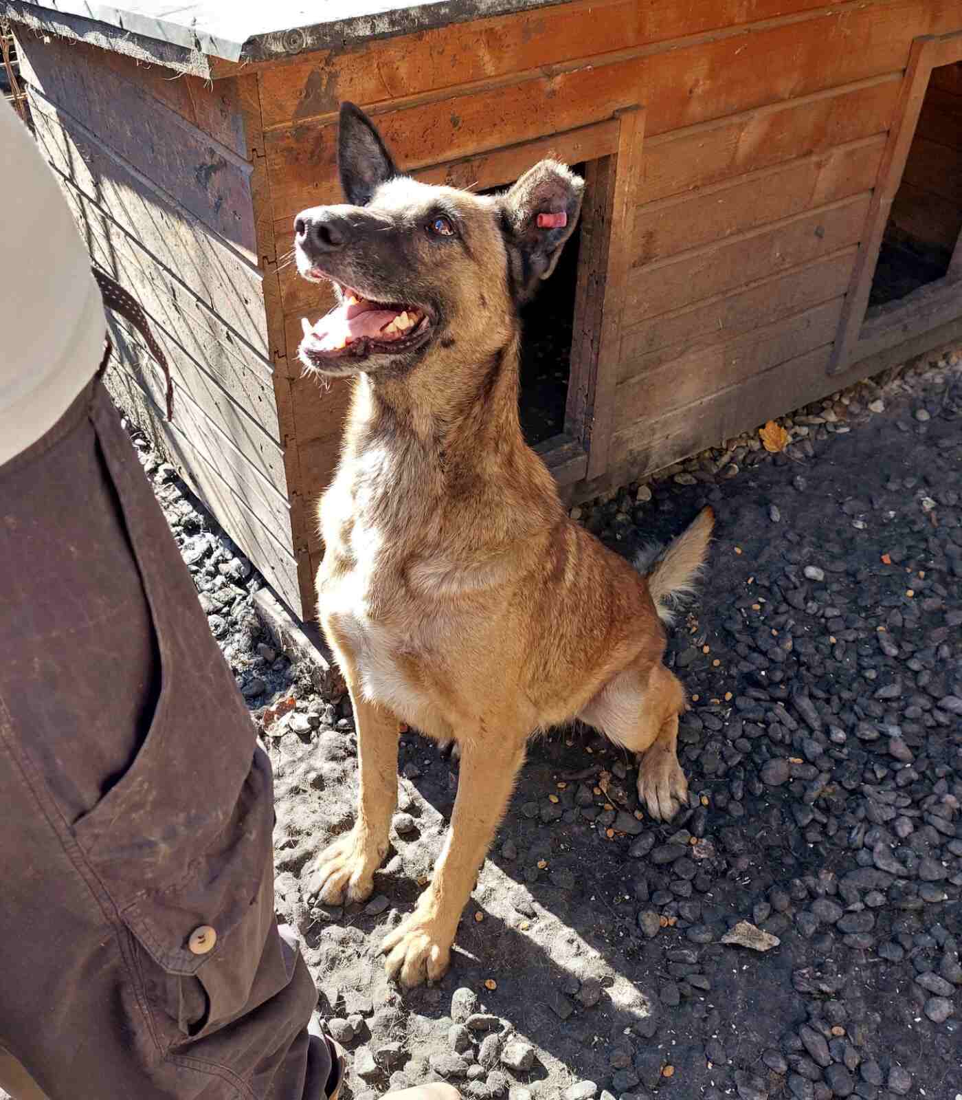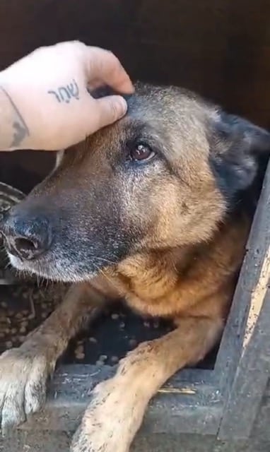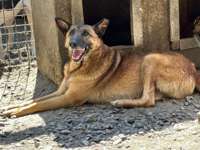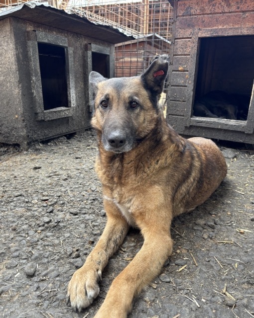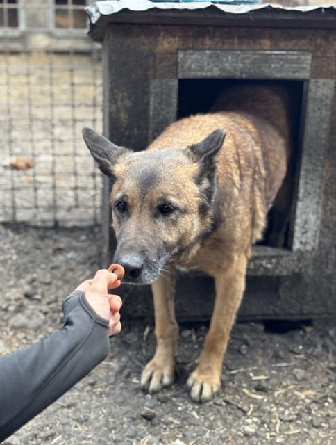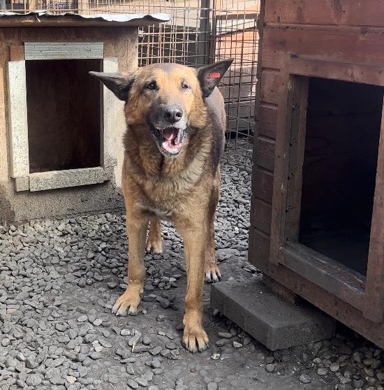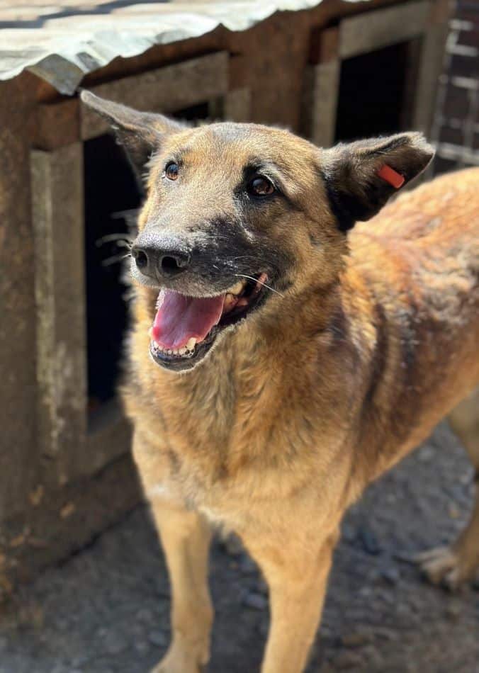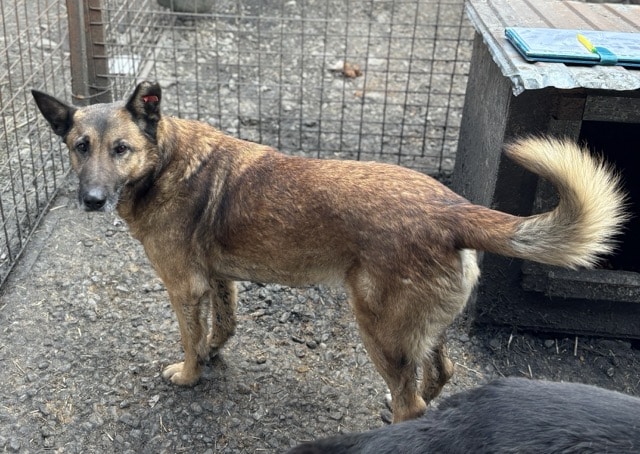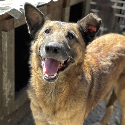 JOSHA humpelt nicht mehr, hat aber inzwischen leider seine linke Ohrspitze eingebüßt. Er erinnert ein bisschen an einen Malinois. Es hatte den Anschein, als wolle er uns gefallen, so wie er sich vorbildlich vor uns gesetzt hat, um seine Leckerli in Empfang zu nehmen. Streicheln konnten wir ihn gut.