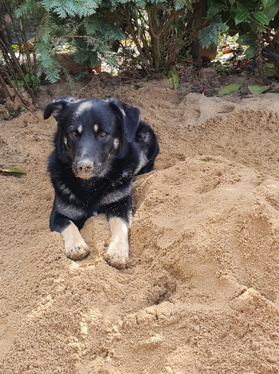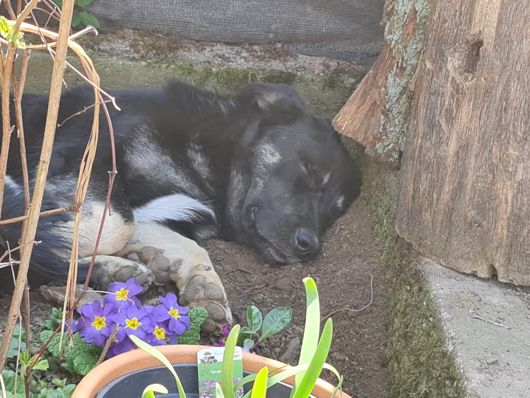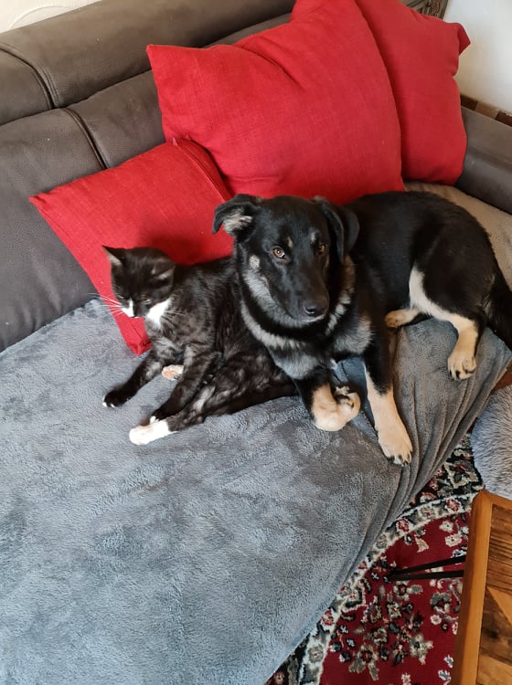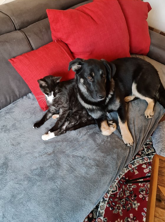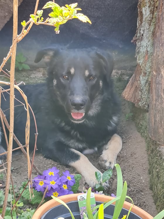 Joshi lebt aktuell mit 3 Hundekumpels, einer Freigängerkatze, seinen Pflegeeltern und einem kleinen Zweibeiner auf dem Land.