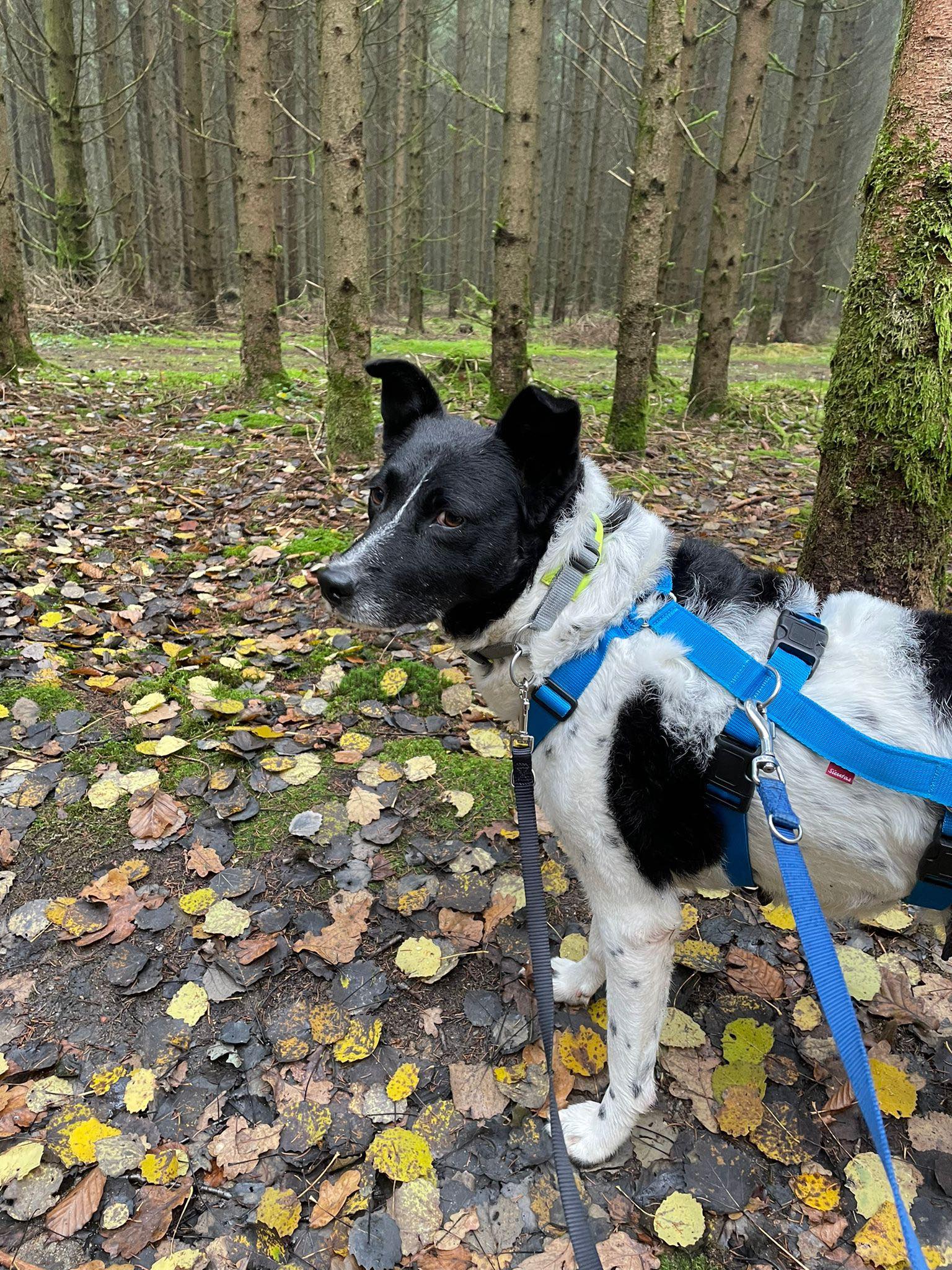 Ihre Fell Färbung lässt eventuell Münsterländereinschlag vermuten. Jagdtrieb ist bisher aber nicht großartig aufgefallen. Mehrmaliger Kontakt mit Wild lässt sie weitgehend unbeeindruckt. Die Fährte würde sie jedoch ohne Leine sicherlich aufnehmen. Die größte Gefühlsregung zeigte sie bisher bei Mäuselöcher und schwarzen Vögeln. Jedoch hat sie draußen eine gewisse Form von Sturheit. Kommandos die sie nicht versteht oder bei aufkommender Hektik stellt sie auf Durchzug.