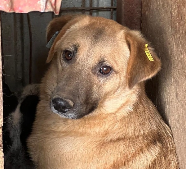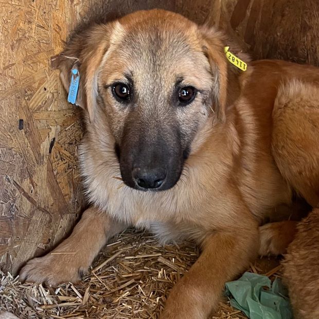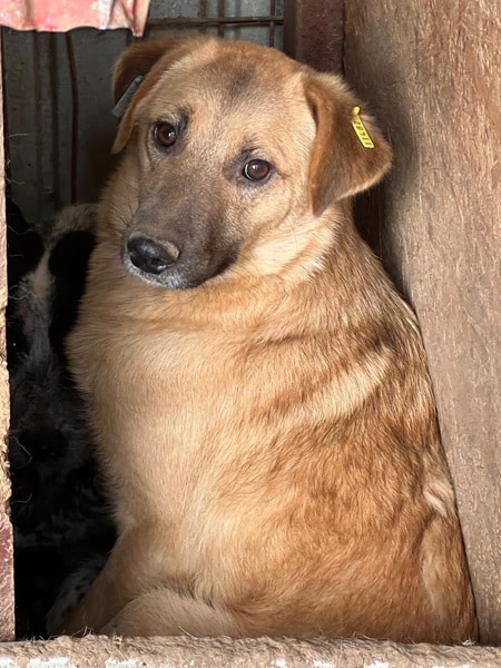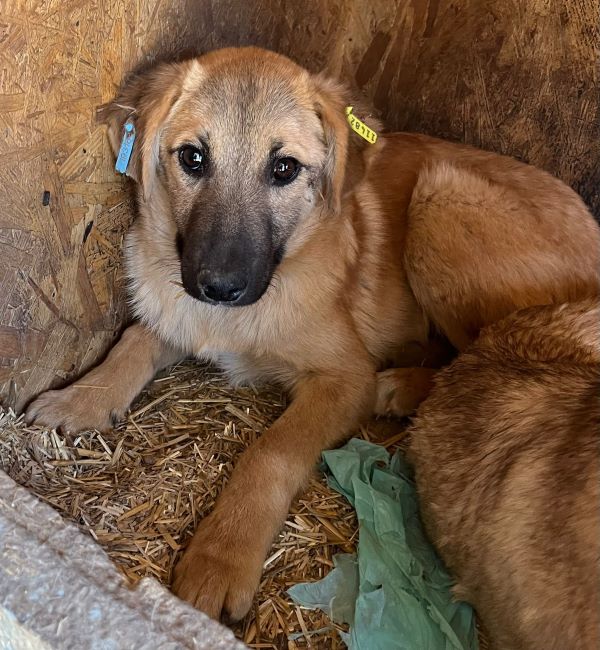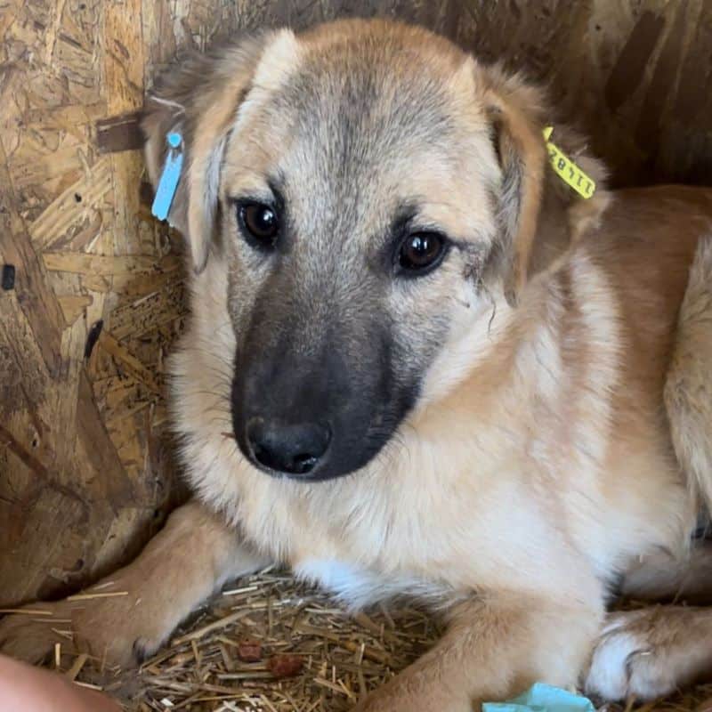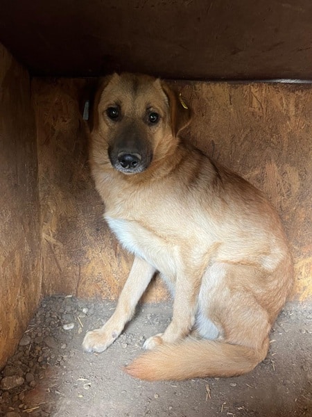 Diese junge Hündin hielt sich während unseres Besuchs in der sicheren Hütte auf. Unsere Anwesenheit gruselte JUBILEE – in ihrem kurzen bisherigen Leben wird sie wohl nur kaum oder gar schlechte Erfahrungen mit Menschen gesammelt haben, weshalb sie uns nicht traute. Als wir uns ihr näherten, um Leckerlie in die Hütte zu legen und sie zu berühren, zeigte JUBILEE uns ihre Angst deutlich durch Knurren. Was muss diese zarte und noch so junge Hundeseele bisher bereits erlebt haben, dass eine Hand ihr solche Angst macht…?