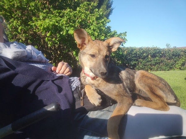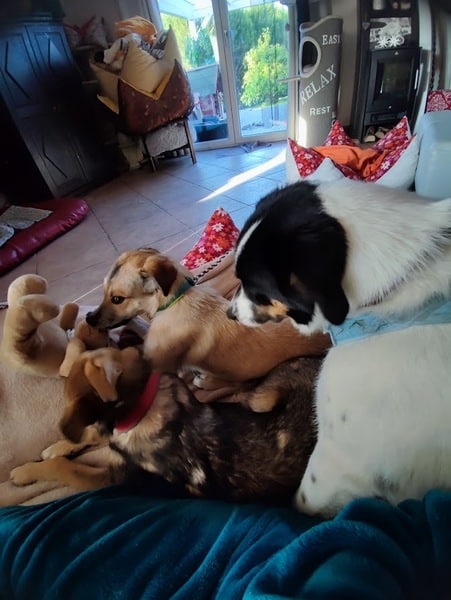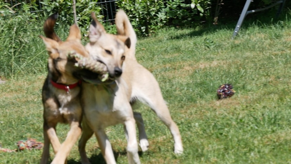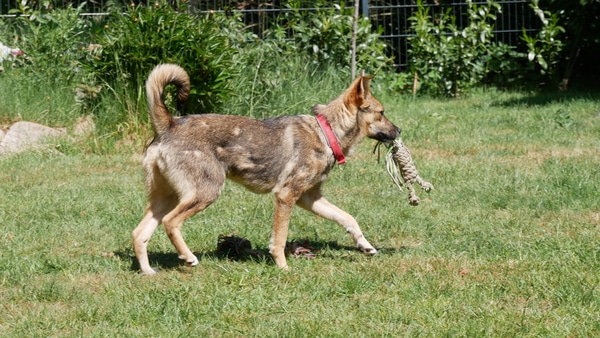 Bei Ankunft hier war sie aufgeregt, freudig über alles und jeden aber auch verunsichert, ob nun alles gut für sie ist. Das hat sich hier Zuhause schnell gelegt und sie läuft prima mit. Ihre Reisegefährtin Eliz war ihr zunächst genug an Gesellschaft, das übrige Rudel fand sie etwas bedrohlich. Mit entspannter und konsequenter Begleitung ist das nun kein Thema mehr; aufgeschlossen tollt sie hier umher und hat ihren Lieblingsspielpartner auch schon gewechselt und in Pippilotta eine ähnlich schnelle und wendige Lauffreundin gefunden. Auch das Ruhen mit ihr zusammen genießt sie sehr.