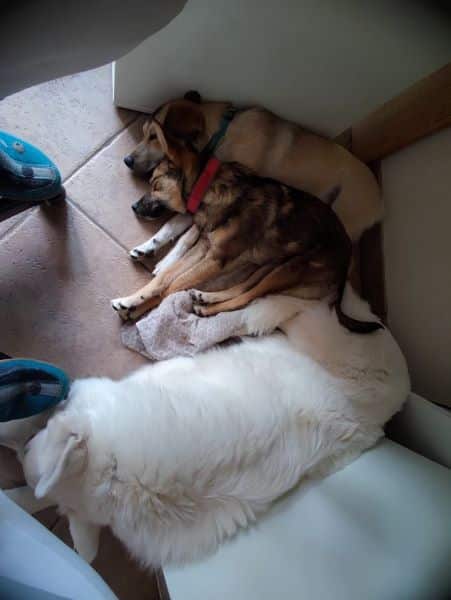 Sie achtet sehr auf ihr Pflegefrauchen, zu groß noch die Sorge dass die (oder sie?) verloren geht. Alleine sein wird hier jetzt kleinschrittig geübt, kurze Zeit klappt das schon gut; zusammen mit einem Hundefreund noch besser. Die hundeerfahrenen Katzen sind für sie Neuland; deutlich, dass sie die sehr interessant findet. Da die Katzen jedoch sehr entspannt sind und nettes Hundeschnuppern auch zulassen, lernt Julee, dass sie zum Rudel dazugehören. Sie ist ein schlaues Mädchen; mit guter und konsequenter Anleitung kann sie alles lernen.