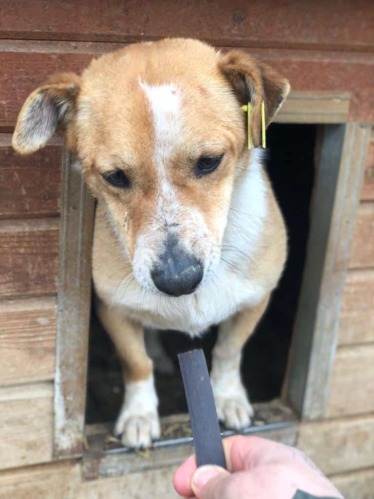 JURI zeigte sich sehr interessiert und kam auch von sich aus zu uns. Leckerchen nimmt er prima aus den Fingern. Fürs Anfassen müsste mehr Zeit aufgewendet werden. Hat er einmal Vertrauen gefasst, dürfte das Eis schnell gebrochen sein.