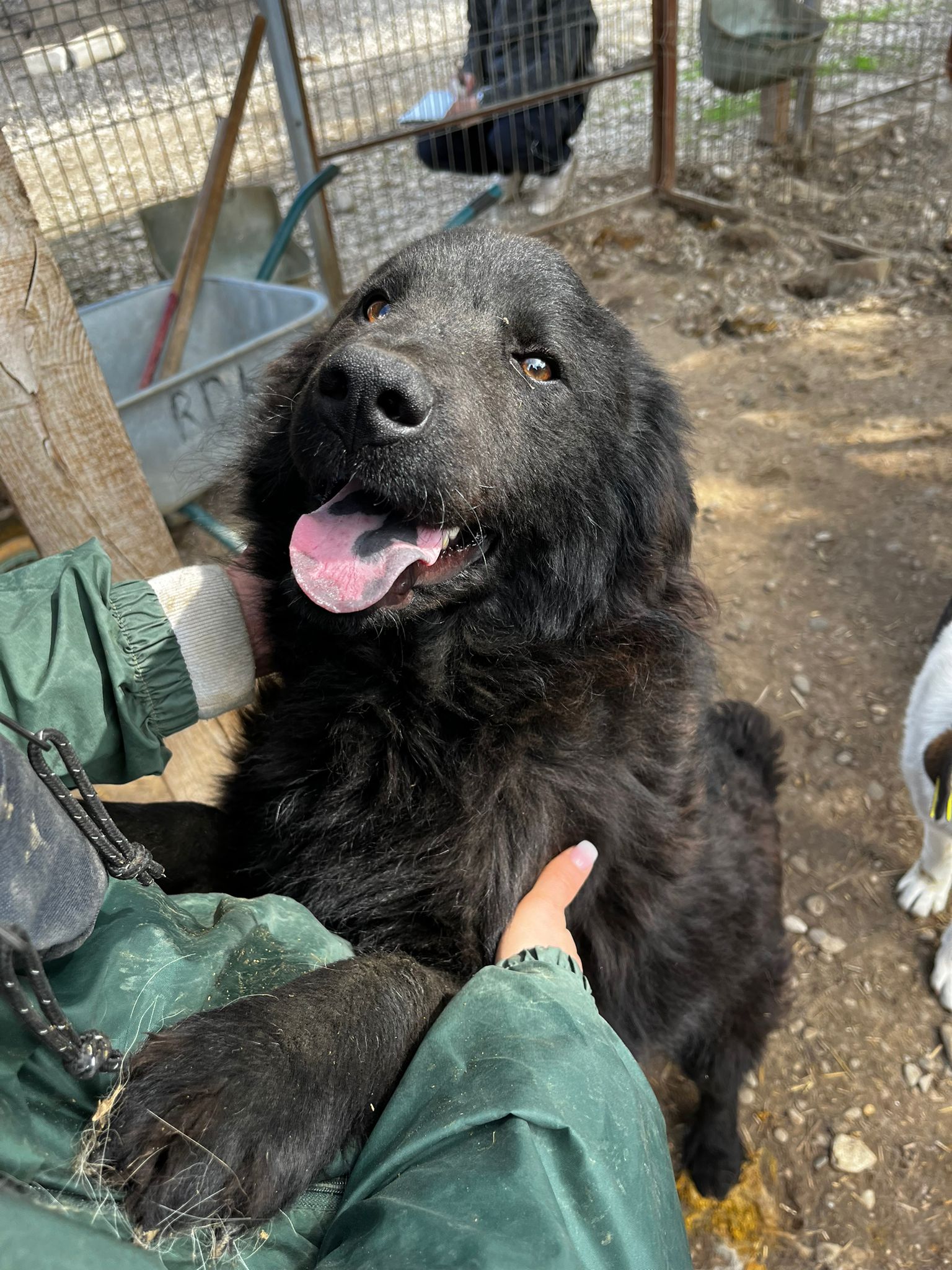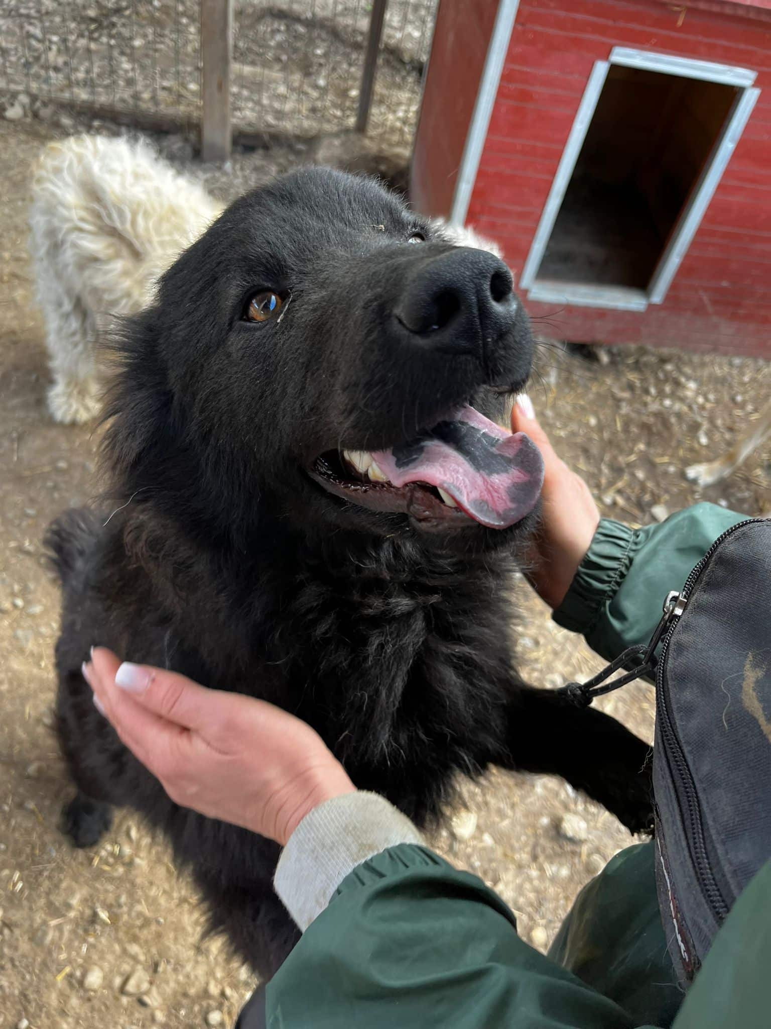 Der tolle JURY ist ein sehr aufgeschlossener und freundlicher Rüde mit blauen Punkten auf der Zunge. Er forderte unsere Aufmerksamkeit ein und tänzelte immer um uns rum – man kann es ihm nicht verdenken, denn Zärtlichkeiten bekommt er so selten. Augenscheinlich sucht er auch zu Männern Nähe, denn wir hatten diesmal auch einen männlichen Volontär dabei.