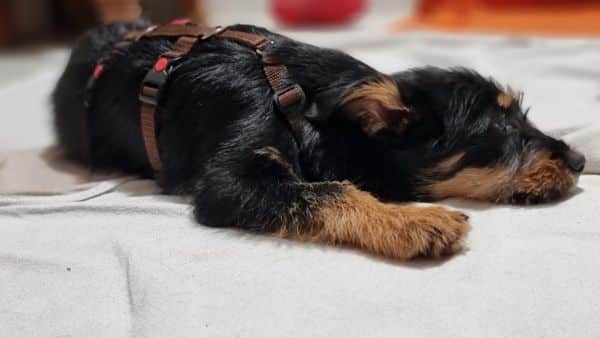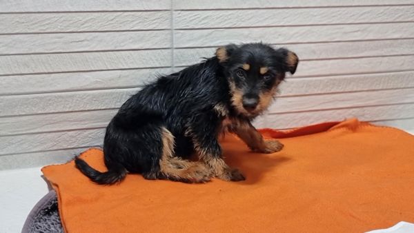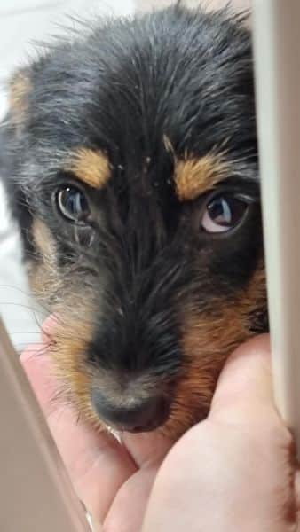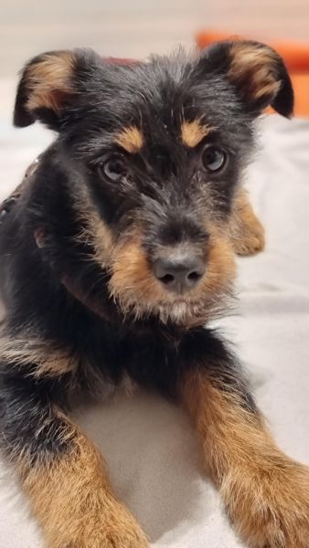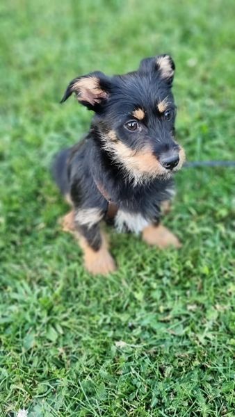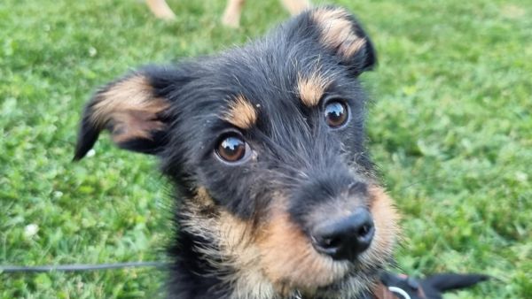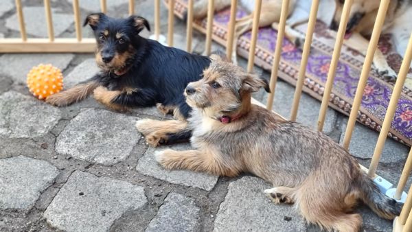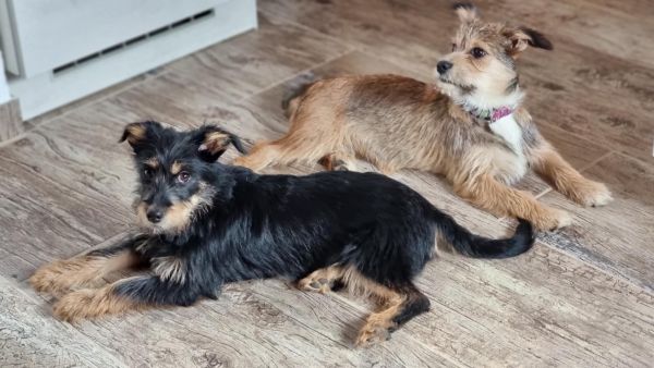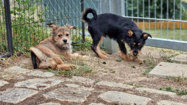 Wesen & Zutraulichkeit (Character & Trustworthiness) | welpentypisch (typical for puppies), verspielt (playful), offen (open), freundlich (friendly), neugierig (curious), sehr menschenbezogen (very people-related), gerne anfassbar (likes to be touched), überall anfassbar (touchable everywhere), anfassbar (touchable), nimmt Leckerchen (takes goodies), zutraulich (trustful), benötigt Eingewöhnungszeit (takes time to settle in), braucht Zweithund (needs second dog) |
