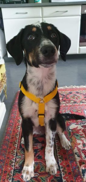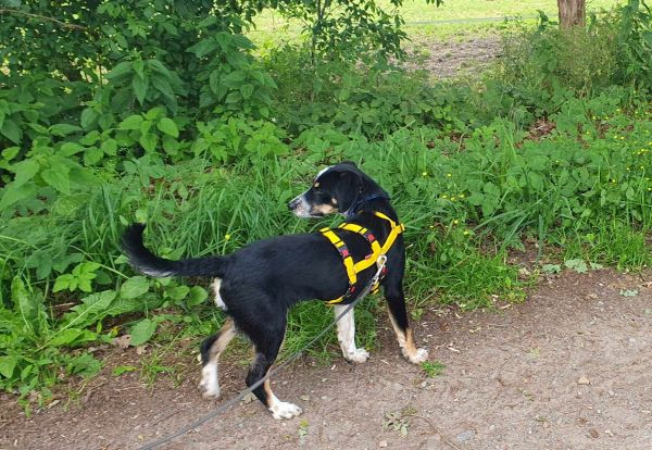 Käthchen ist eine süße, zutrauliche Mischlingshündin und lernt jetzt hier auf ihrer Pflegestelle das Hunde 1 x 1. Sie läuft bereits gut an der Leine und Hundebegegnungen werden freundlich registriert.