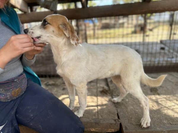 Die zauberhafte kleine KÄTHY geht in ihrem Kennel total unter. Sie ist nicht aufdringlich und hält sich eher im Hintergrund auf, was wohl dem aktuellen Gesundheitszustand geschuldet ist. Der Winter steht bevor und KÄTHY hustet; deshalb sollte sie schnellstmöglich ausreisen. Sie genießt die Streicheleinheiten und ist absolut menschenbezogen. An unseren Leckerchen zeigte sie Interesse.