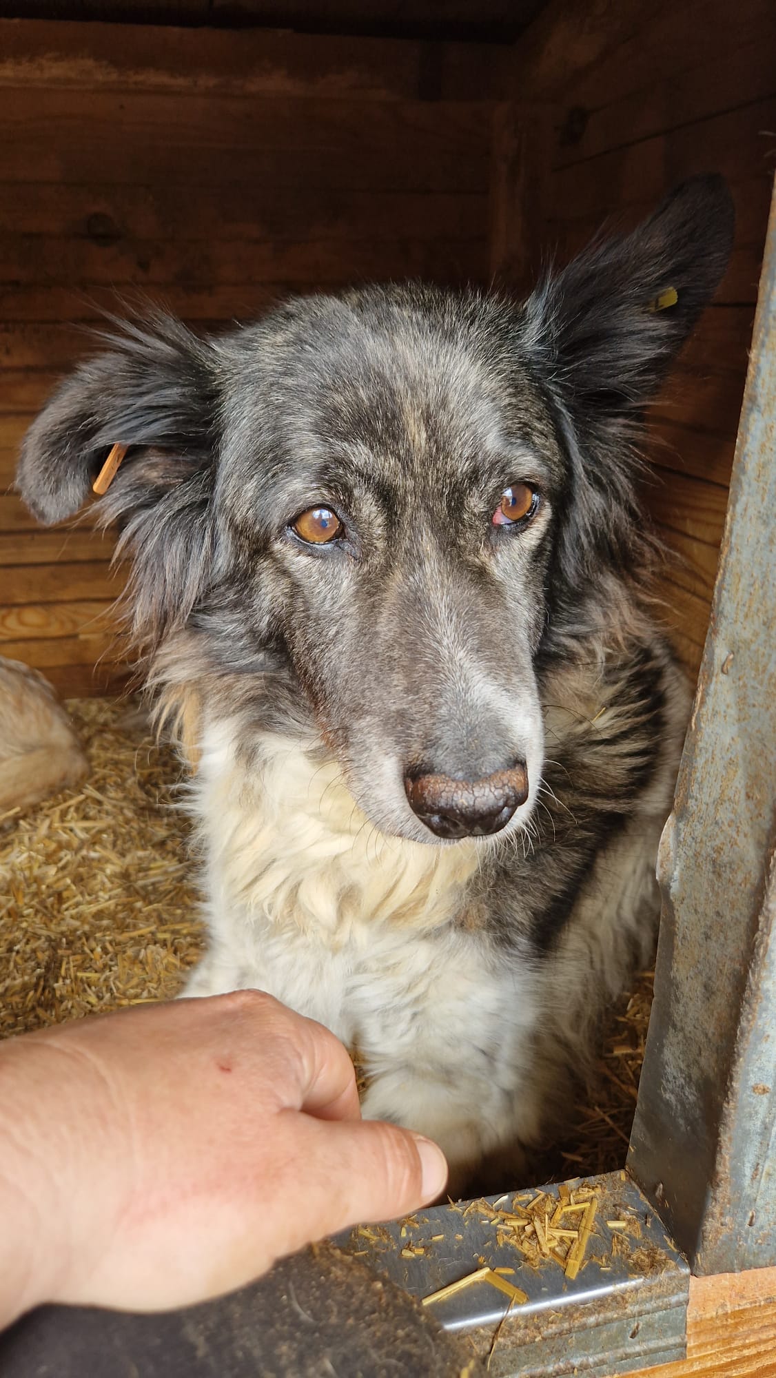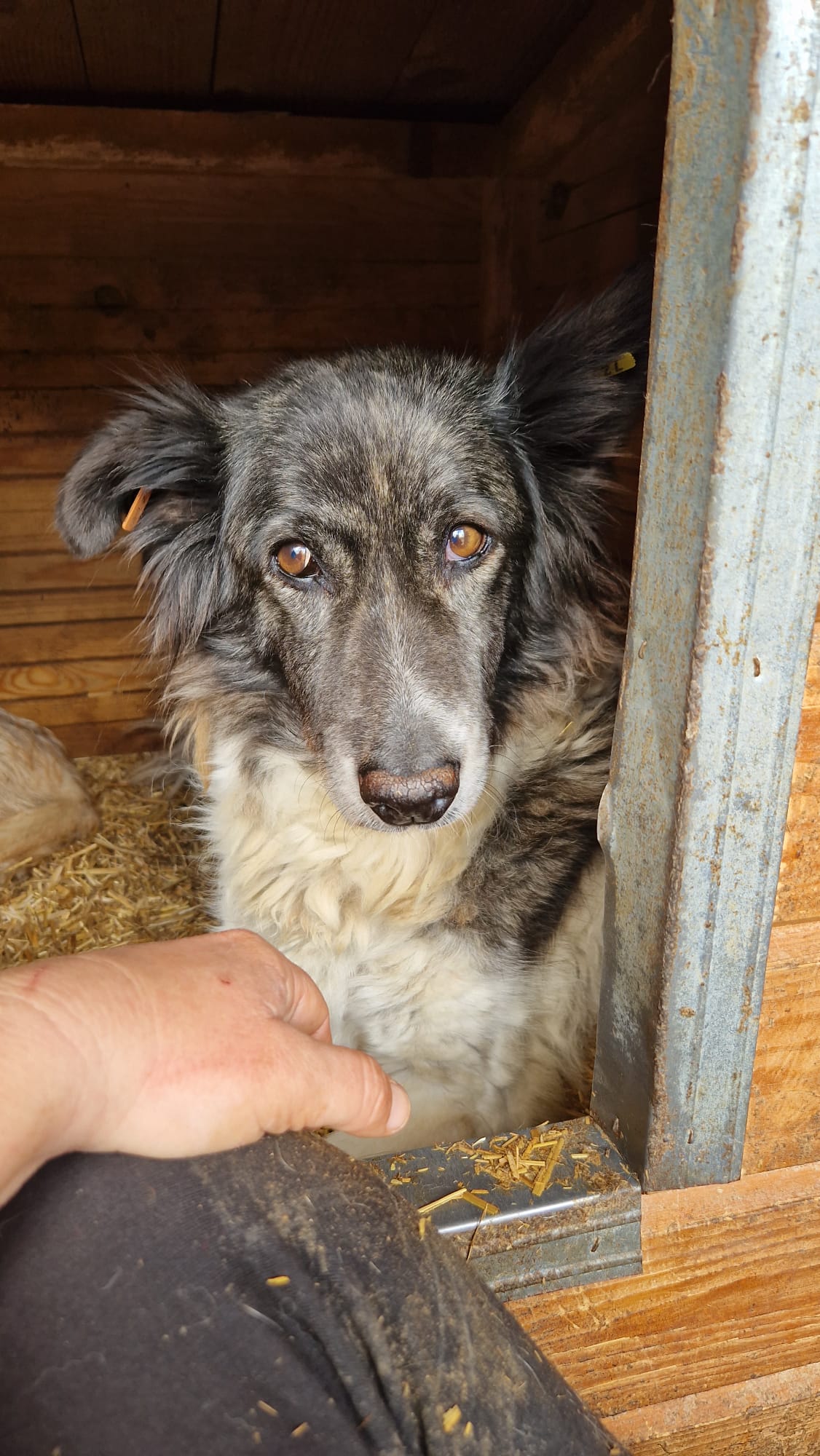 Wir hoffen so sehr, dass sie die Chance auf einen ruhigen Lebensabend bei Menschen bekommt. Andere Hunde sind kein Problem für sie. Sie sitzt mit Welpen und Hündinnen zusammen, was gut klappt.