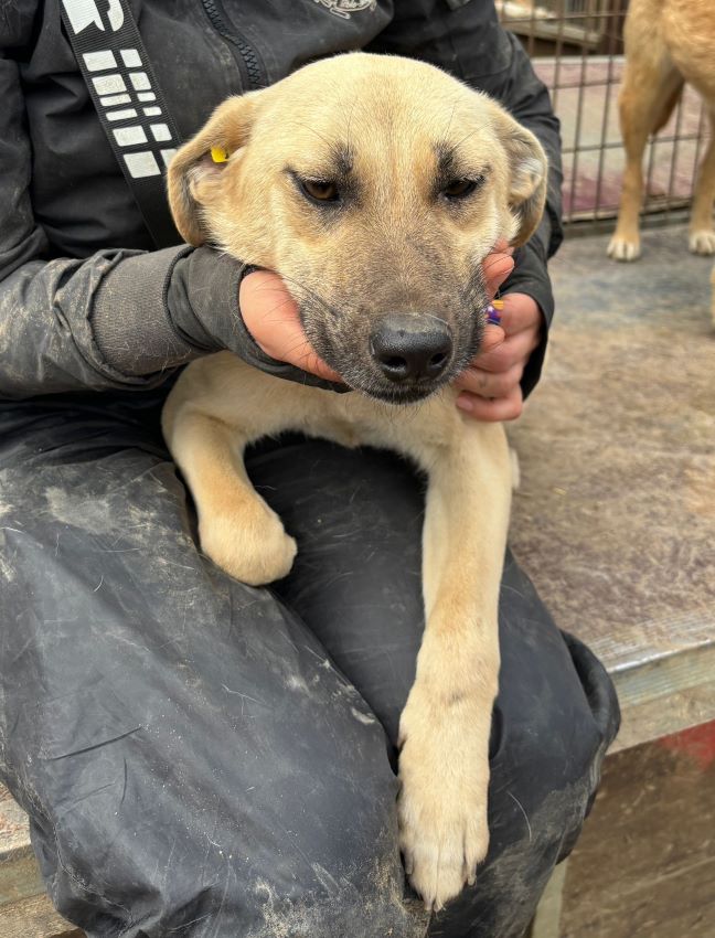 Diese zarte Hündin berührte uns sehr. KAILEY hielt sich stets in unserer Nähe auf und zeigte sich von der ersten Sekunde an interessiert, jedoch auch etwas skeptisch, ob wir es wirklich gut mit ihr meinen. Als wir uns ihr näherten, wedelte die Rute zaghaft. Demütig machte sie sich klein und schien hin- und hergerissen zwischen ihrer Neugier und Skepsis. Schließlich gewann ihr Mut und KAILEY ließ sich vorsichtig streicheln und auch halten. Diese intensive Nähe ist vermutlich neu und deshalb noch ungewohnt für sie und sie schien beinahe überrascht, dass jemand so liebevoll mit ihr umgeht. In einer ruhigen Umgebung bei verständnisvollen Menschen würde KAILEY nach etwas Eingewöhnungszeit sicher ganz auftauen und eine tolle, kleine Begleiterin werden. Da die anderen Hunde ihr Sicherheit geben, wäre ein netter Ersthund sicher eine große Stütze und Hilfe für sie, sich in einem neuen Leben zurecht zu finden.