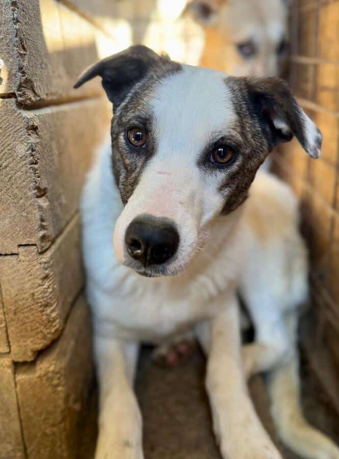 Die zarte , junge Hündin haben wir neu im Kennel angetroffen. Sie brauchte ein klein wenig Zeit aufzutauen, war dann aber prima anfassbar. Sie ist sehr verträglich mit den anderen Kennelbewohnern und daher freut sie sich sicher über andere, entspannte Hunde im zu Hause, die sie ans Pfötchen nehmen können. Wir hoffen, sehr dass sie zeitnah gesehen wird, damit die anfängliche Schüchternheit sich nicht auswächst. Denn sie ist zutraulich und neugierig und möchte so gerne Sicherheit und Geborgenheit spüren. Alles was sie braucht sind souveräne Menschen, die ihr zeigen wie toll das Leben sein kann. Sie hat viel Potenzial, was nicht verschwendet werden sollte.