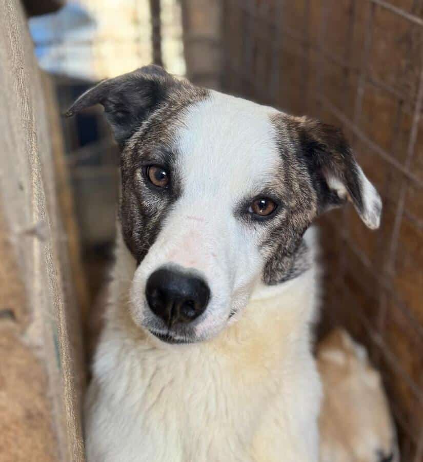 KALIN hat sich bei unserem Besuch leider hinter ihrer Hütte versteckt. Sie beobachtet das Geschehen lieber mit sicherem Abstand. Als wir uns annäherten erwartet sie uns neugierig und nahm gerne Leckerlies aus der Hand. Wir konnten sie überall anfassen, auch wenn ihr Berührungen noch fremd sind. Sie lebt in einem gemischten Kennel und wirkt verträglich. KALIN möchte endlich ankommen dürfen und Vertrauen fassen.